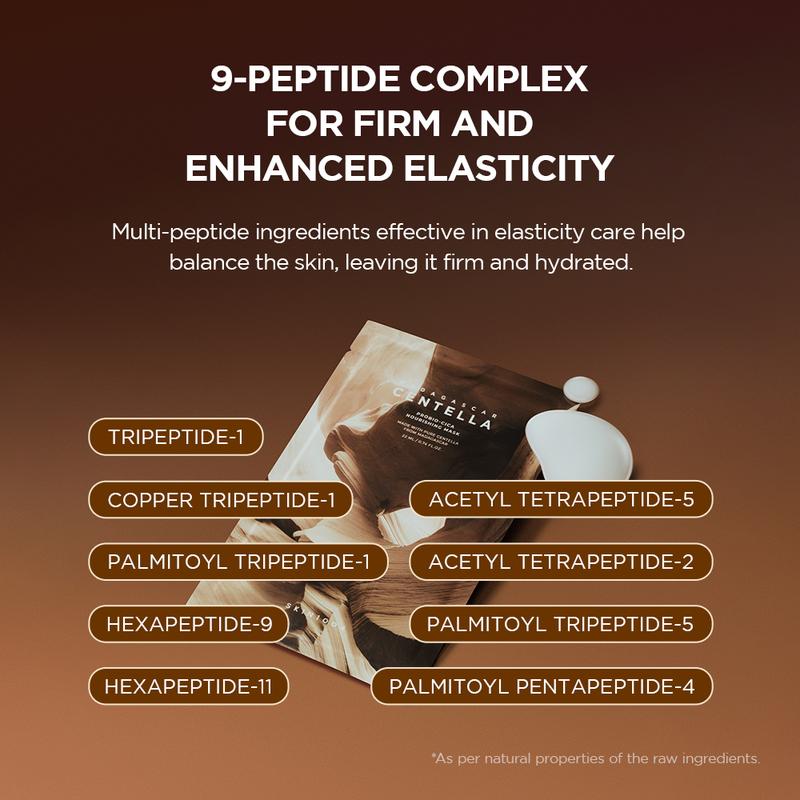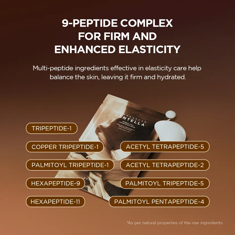 The Probio-Cica Nourishing Mask provides intense hydration and helps support the skin barrier. It features fermented Centella Asiatica Extract, enhancing absorption and soothing irritation. The 9-Peptide Complex boosts skin elasticity, promoting a firmer, youthful appearance. Ceramide helps support the skin’s natural barrier to reduce moisture loss. This ultra-soft, comfortable sheet adheres closely, helping deliver deep nourishment.