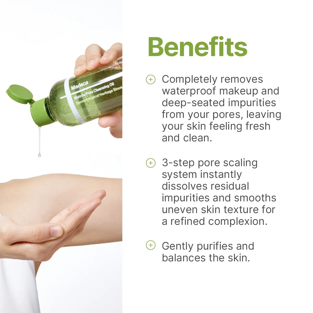 The Matcha Pore Cleansing Oil is designed for deep pore purification through a unique syrup-to-milk transformation.