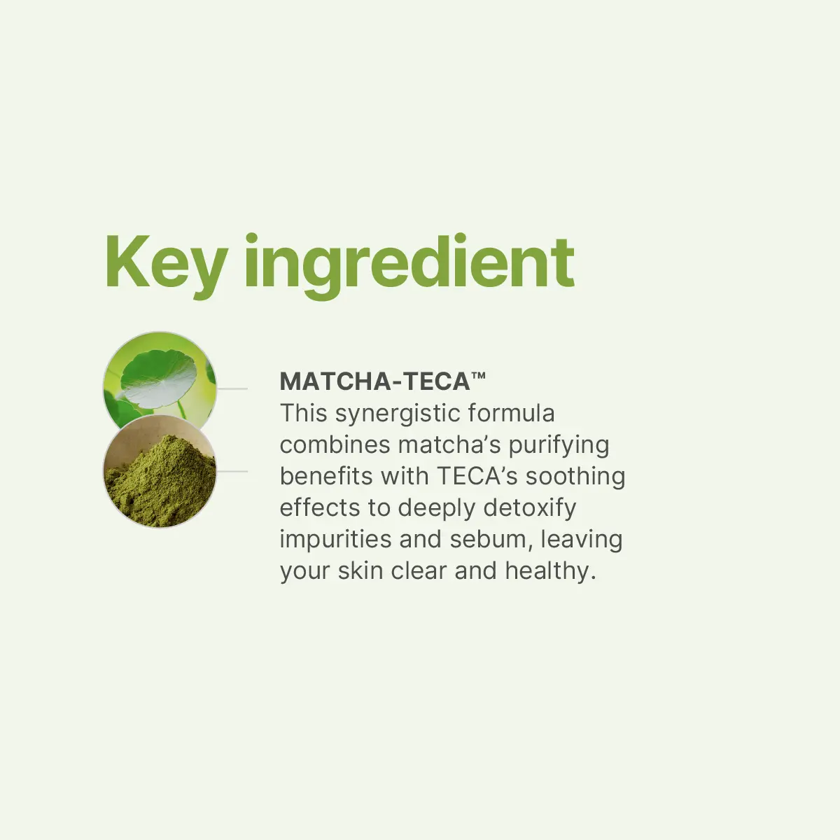 ·Centella TECA Synergy: Matcha + TECA work together to purify skin and soothe while cleansing.