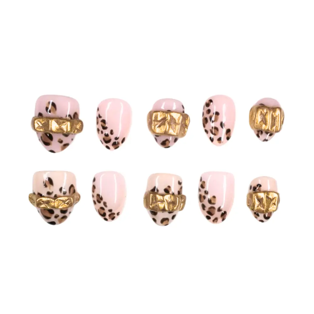 Fierce meets luxe. Bold cheetah print nails elevated with 3D gold accents for a statement look that’s pure runway energy.