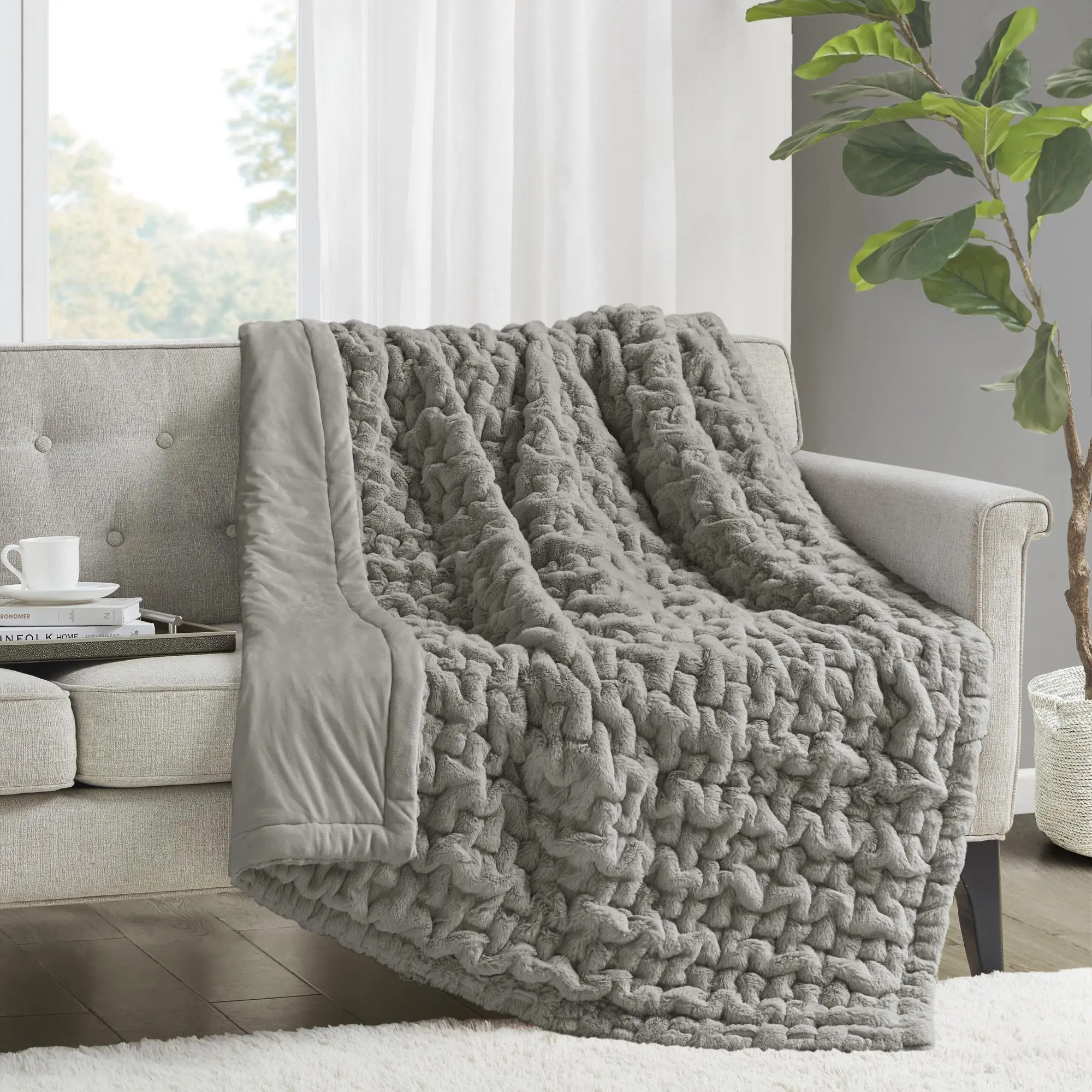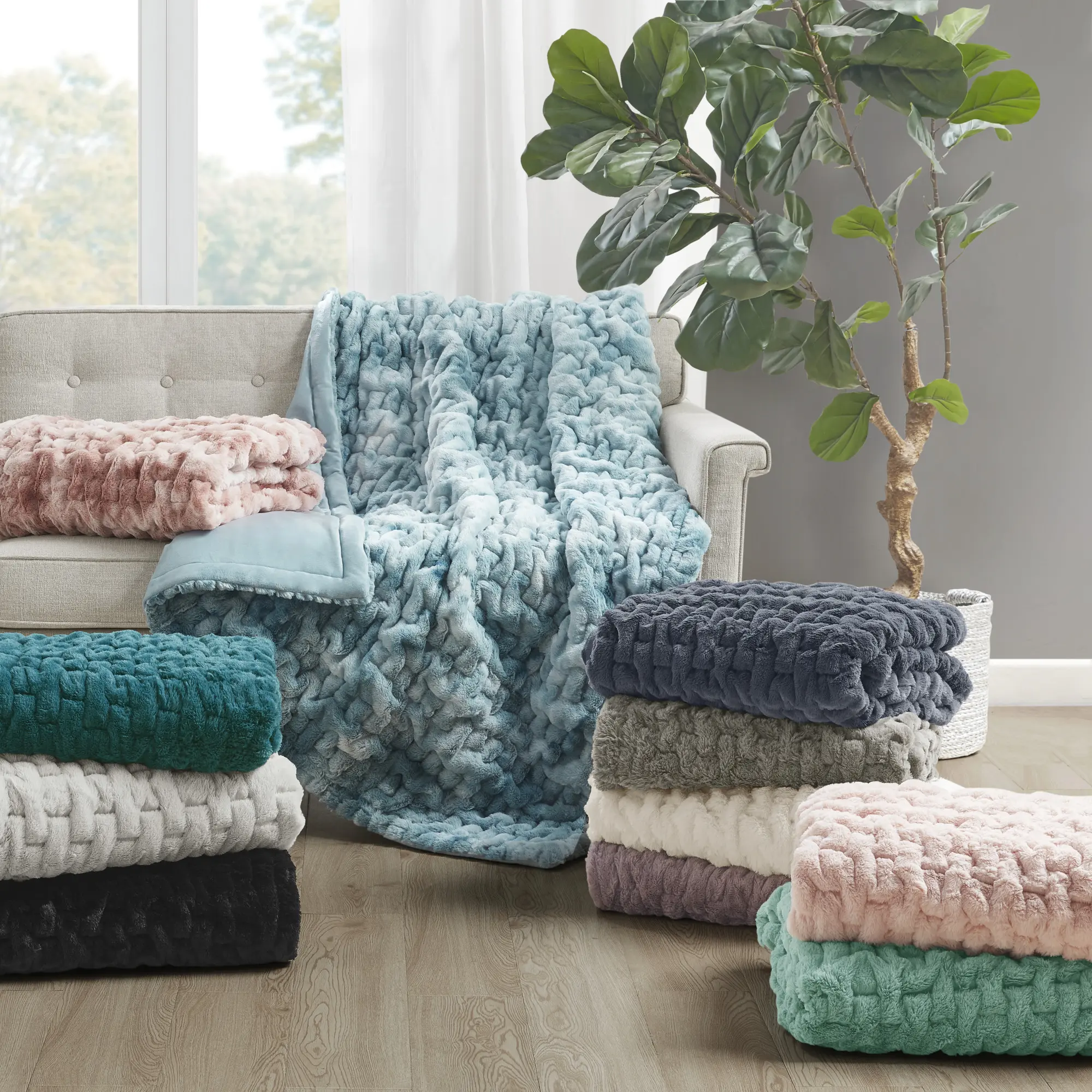 5. Ruched Fur Throw, 50x60", Plush Fuzzy Cozy Blankets and Throws for Couch, Bed, Sofa Cozy, Warm and Breathable