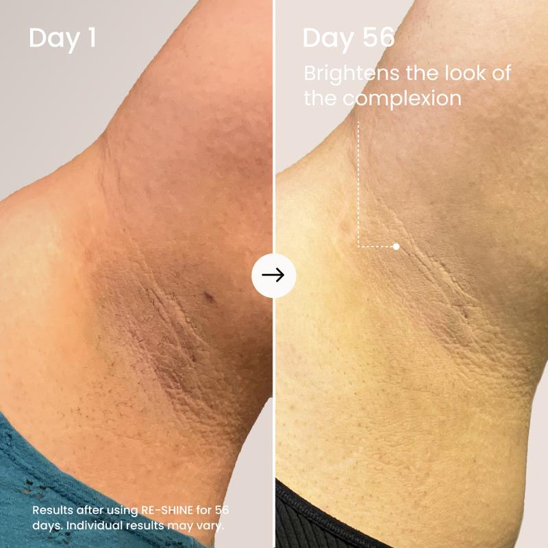 RE-SHINE is a lightweight, fast-absorbing body serum that glides on easily without leaving behind a sticky after-feel.