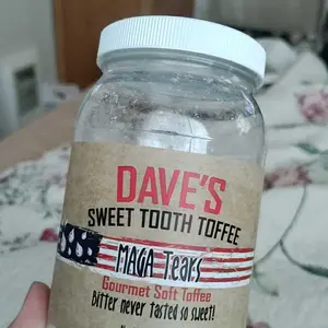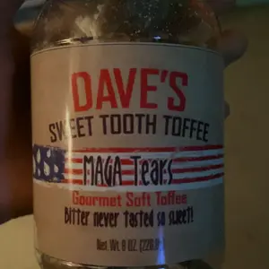 i ordered disgustingly liberal toffee, but i received classic MAGA tears on accident! though i can’t be too sad, the toffee i received is still delicious! :) i’ll have to try again to snag the blue liberal toffee !!