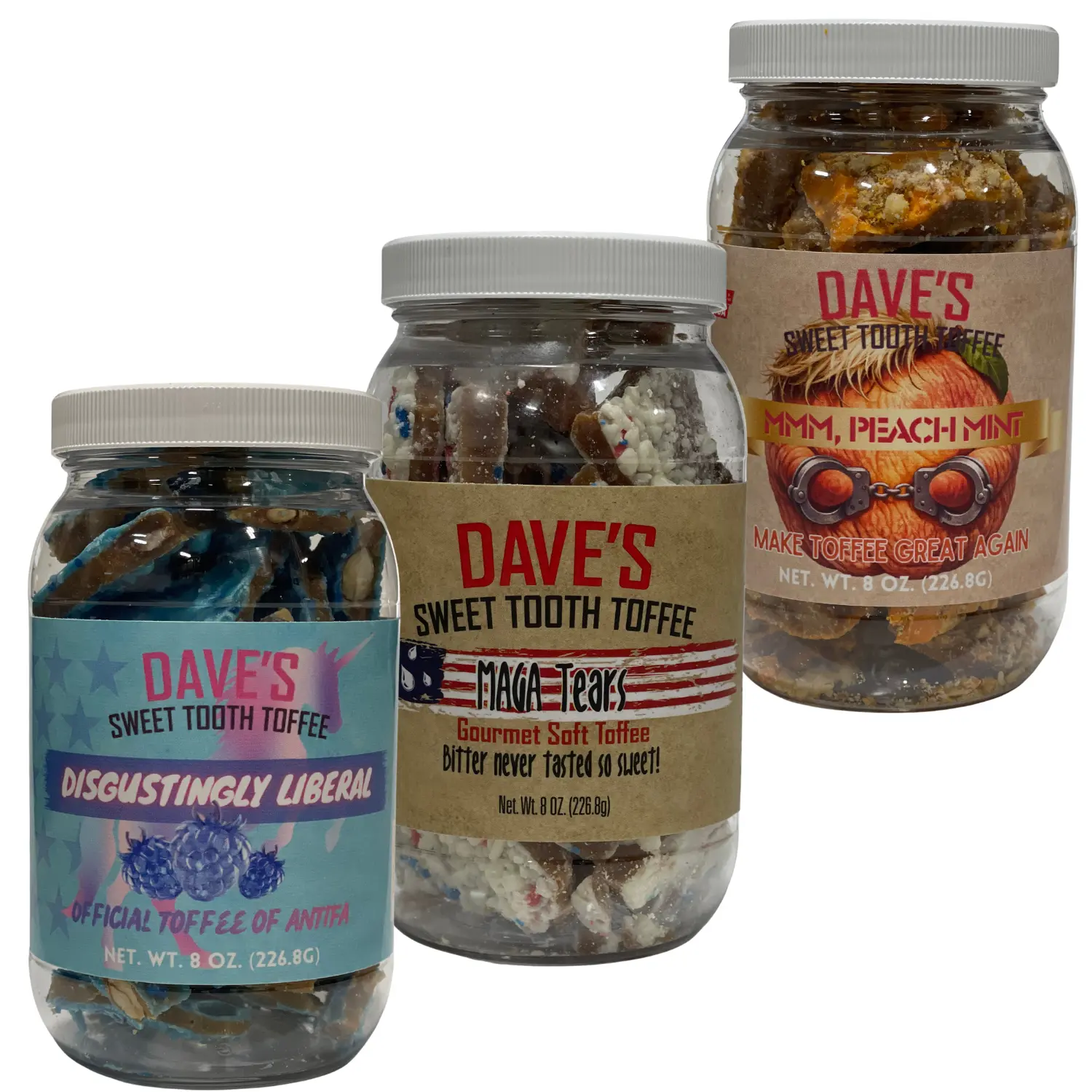 Come on, man! I’m trying to diet! 😭 The only people who say this is not the best toffee on the market are maga. All three of these flavors are just so good! The Disgustingly Liberal is my favorite. It has a sweet, berry taste. You have to try all three!!!! 😋