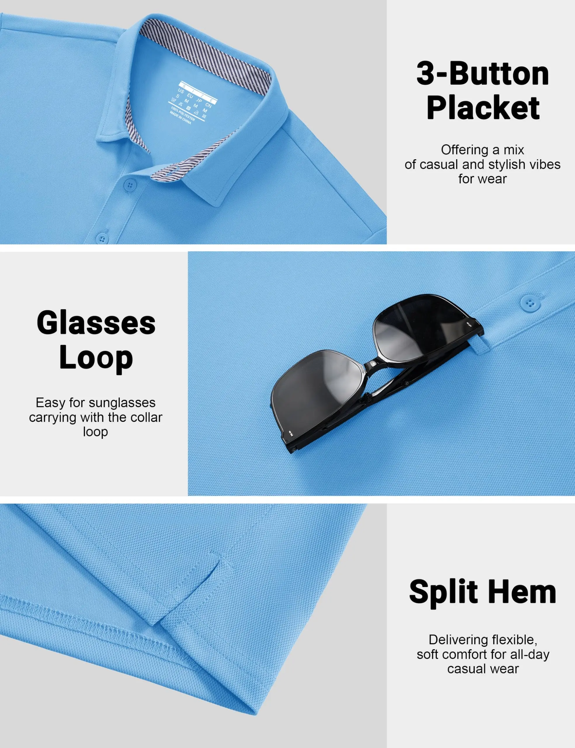 ·Classic Style:Men's golf shirts have a regular fit, split hem and 3-button placket, offering flexible comfort for wear.