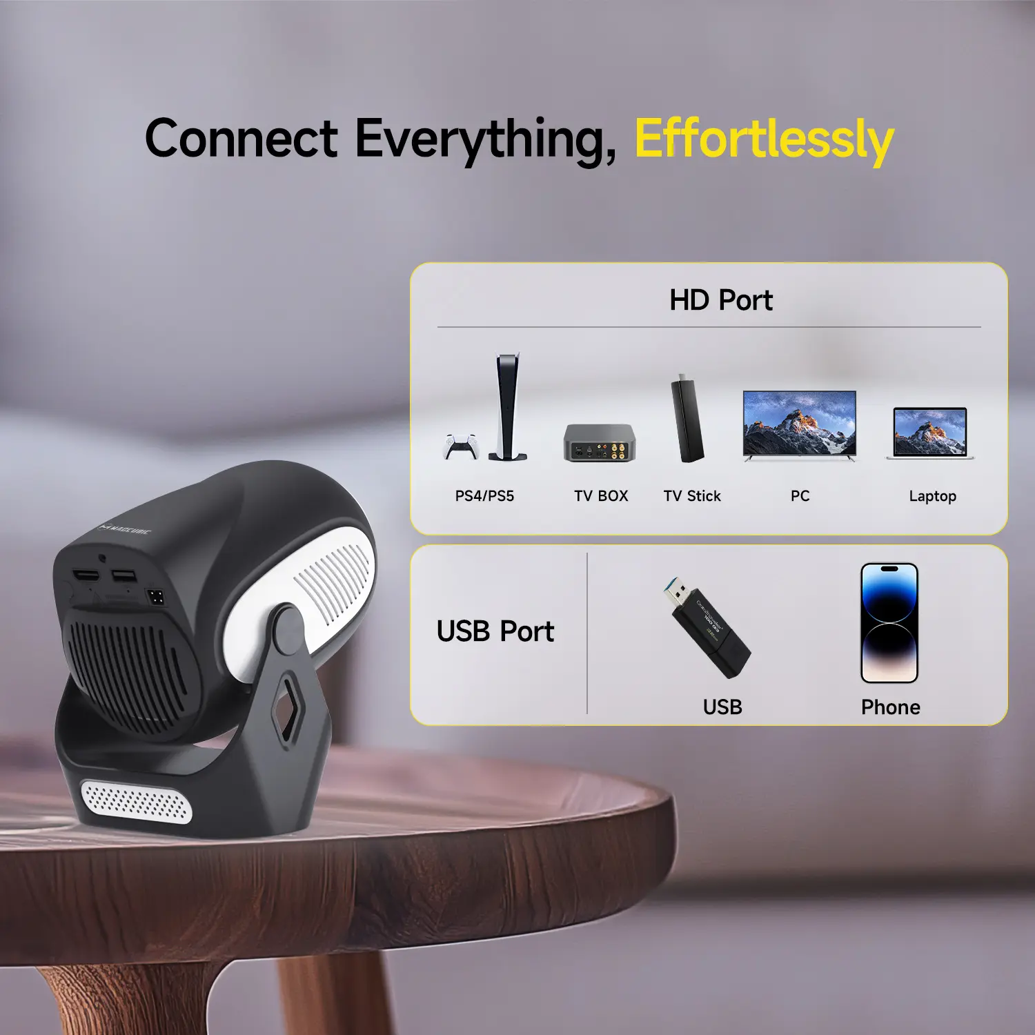 MAGCUBIC HY300X Portable Projector – 300 ANSI, Electric Focus, 4K Supported, Cute Design