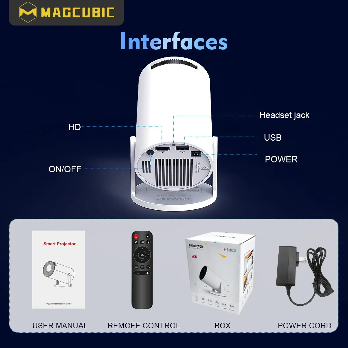 Magcubic Authentic HY300 Pro Portable Projector 【GLOBAL DESIGN PATENT ONWER】 – 8K Decoding, Android 14.0, Dual Band WiFi6, 290 ANSI, Blueto*th 5.4, Built-in Speaker & AppStore, 2025 Newly Upgraded Super Mini Version(350g For Device Itself)