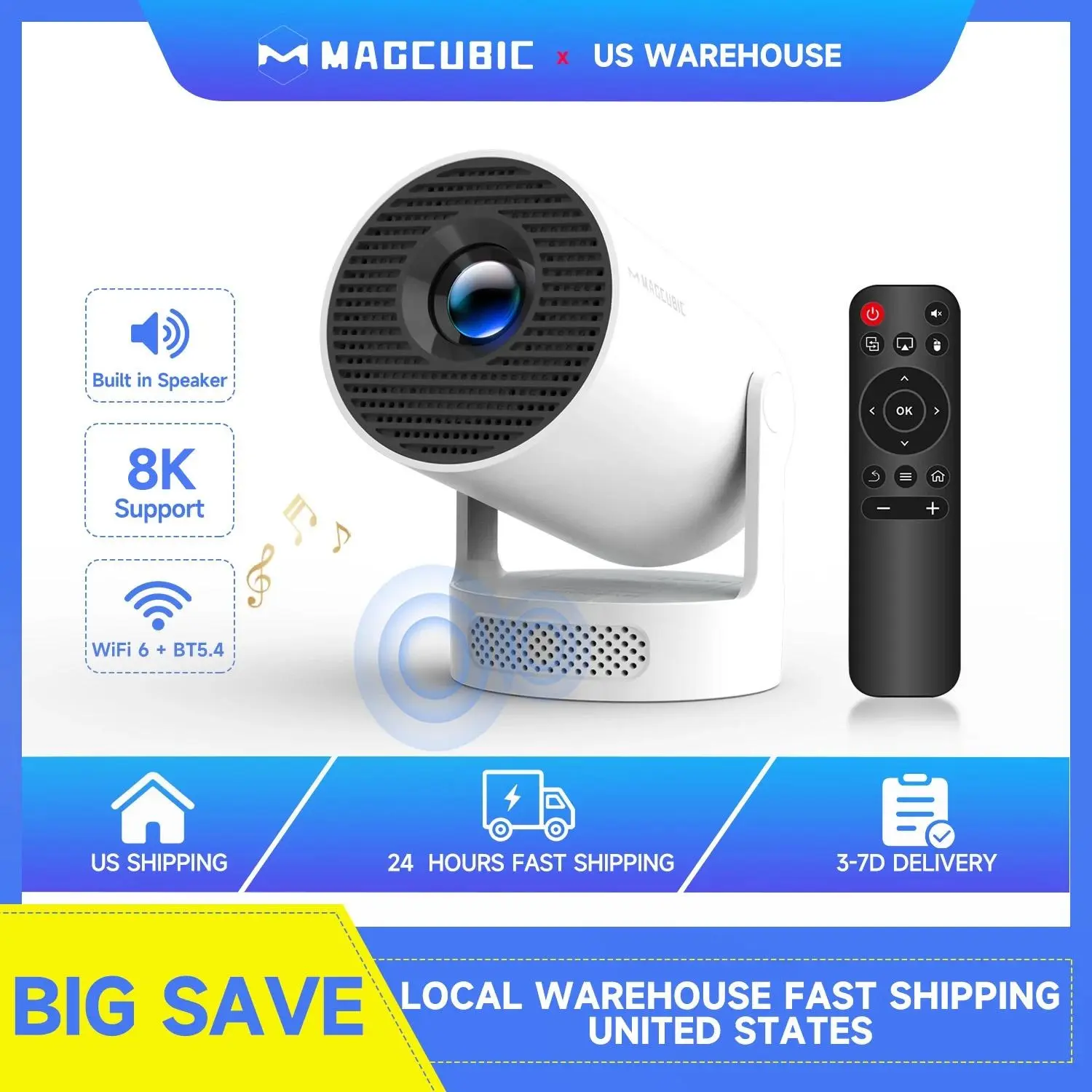 [US Warehouse] Magcubic HY300Pro+ Mini Smart Projector – 0.8:1 Short Throw Ratio, Native 1280×720P, 8K Video Source Supported, Android 11, WiFi6, BT5.4, Built-in Speaker & Appstore, Allwinner H713 Chip – Portable Home Cinema Upgrade of HY300Pro