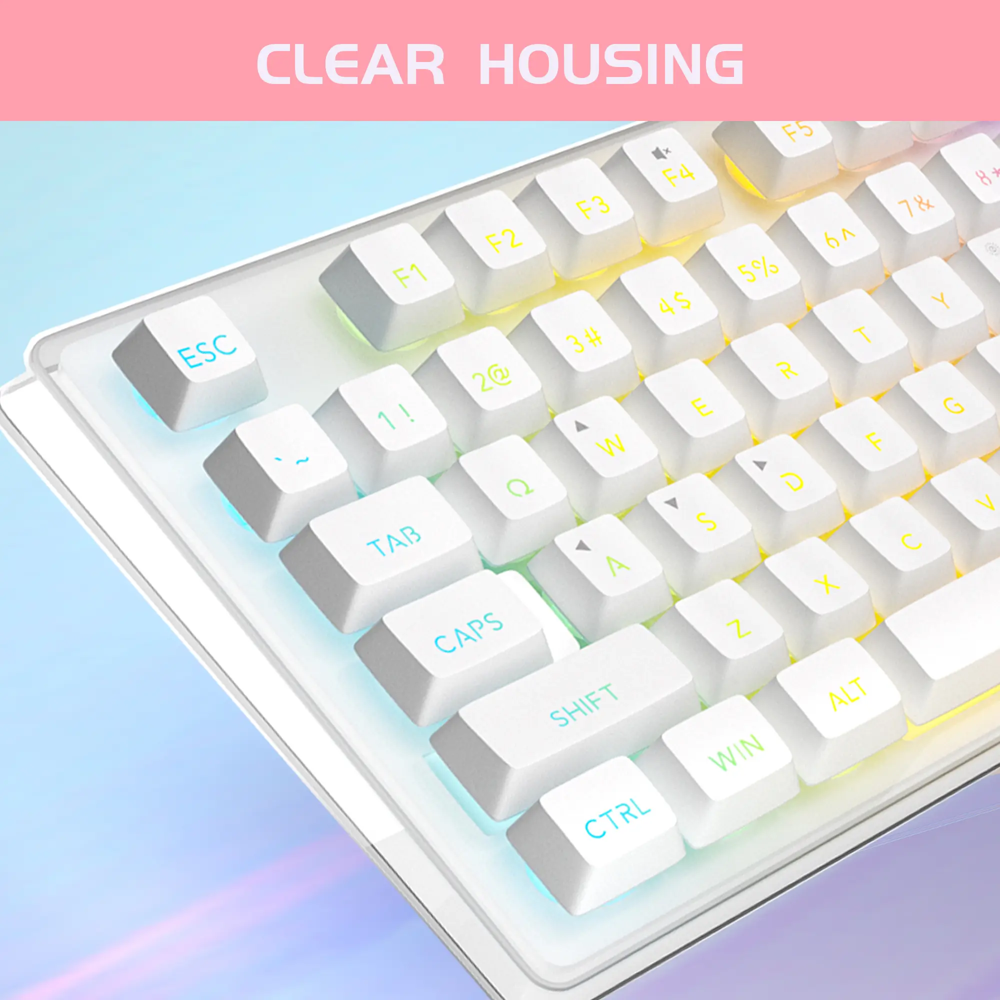 ¡ăRGB LED BacklightăThe keyboard has fantastic RGB backlight. 8 light colors, 5 light modes, multiple brightness levels and light speeds. The double-shot injection moulding process ensures that the letters never fade and have good light transmission. Even if you use the keyboard in the dark, you can see the letters clearly (light also can be turned off).