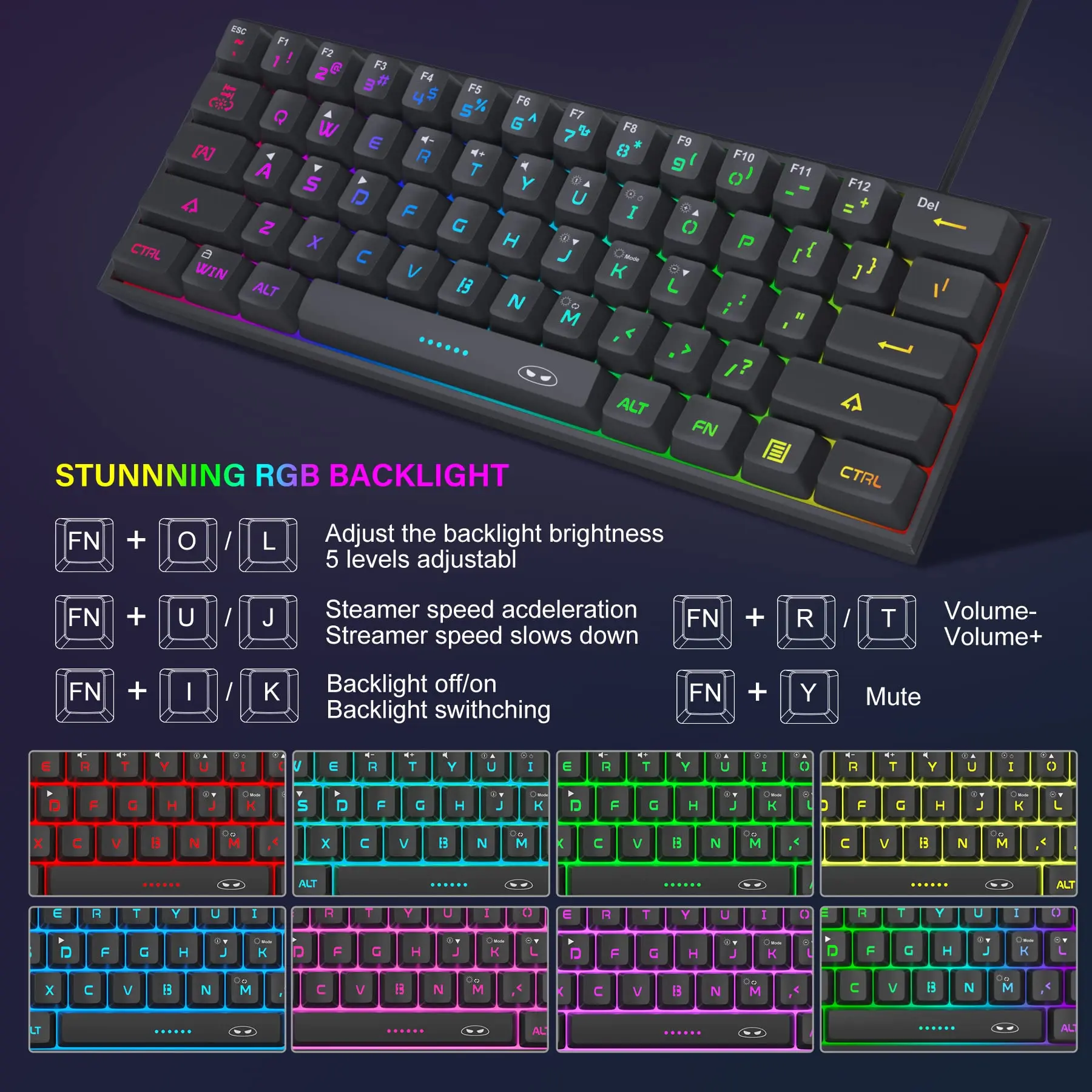 ·【Classic 60% Compact Layout Keyboard】This 60% gaming keyboard has a perfect size and it's good for Home and Office use, without Numpad, more practical for Gamers and Typist, give more space to your desktop.