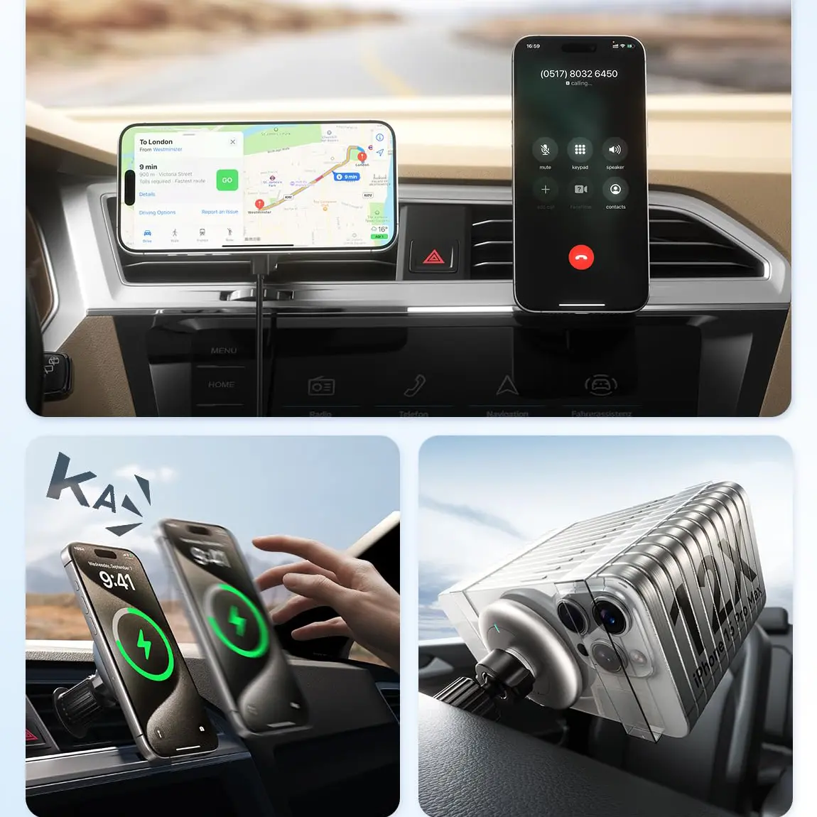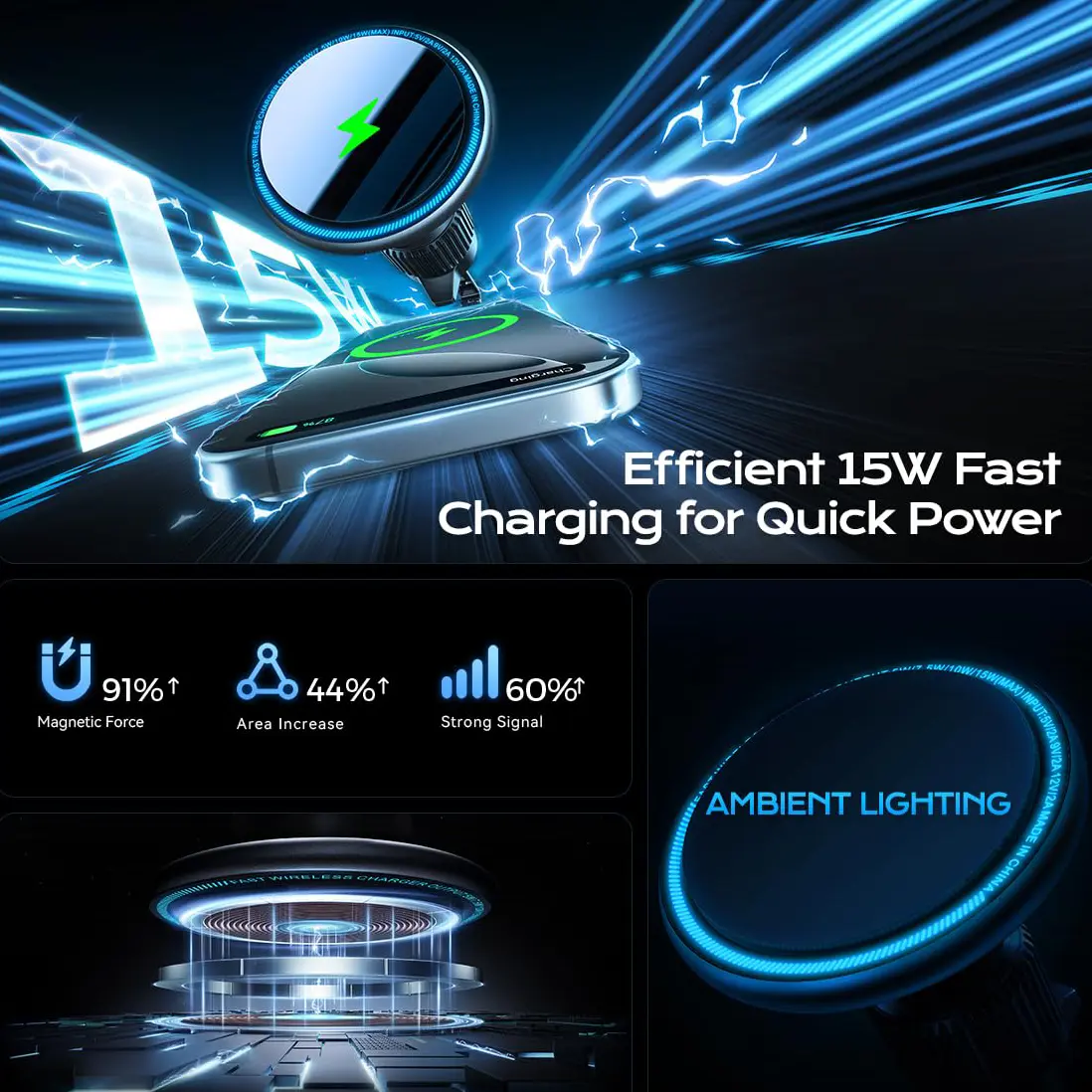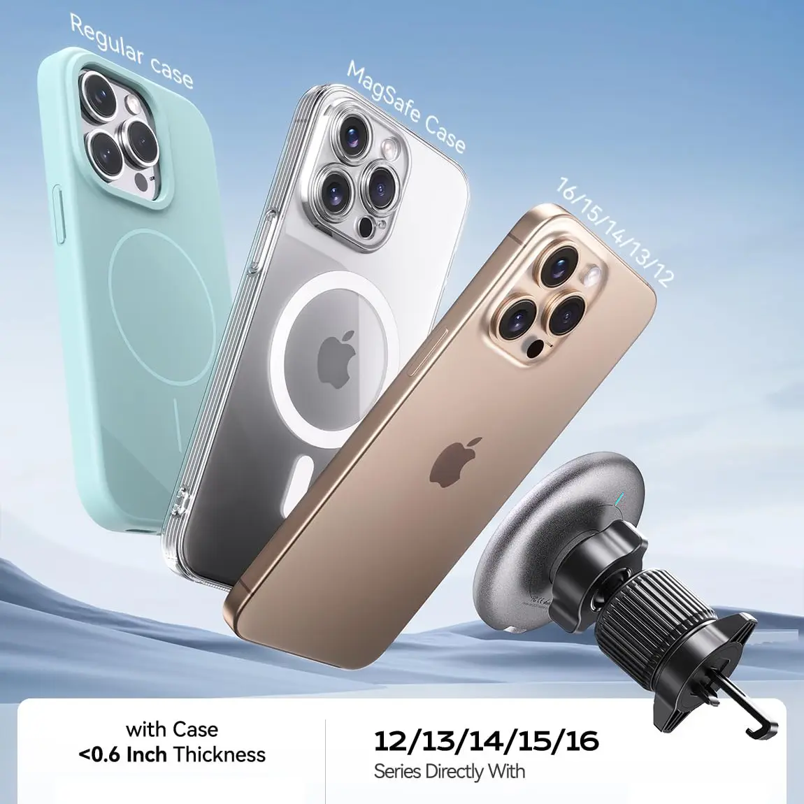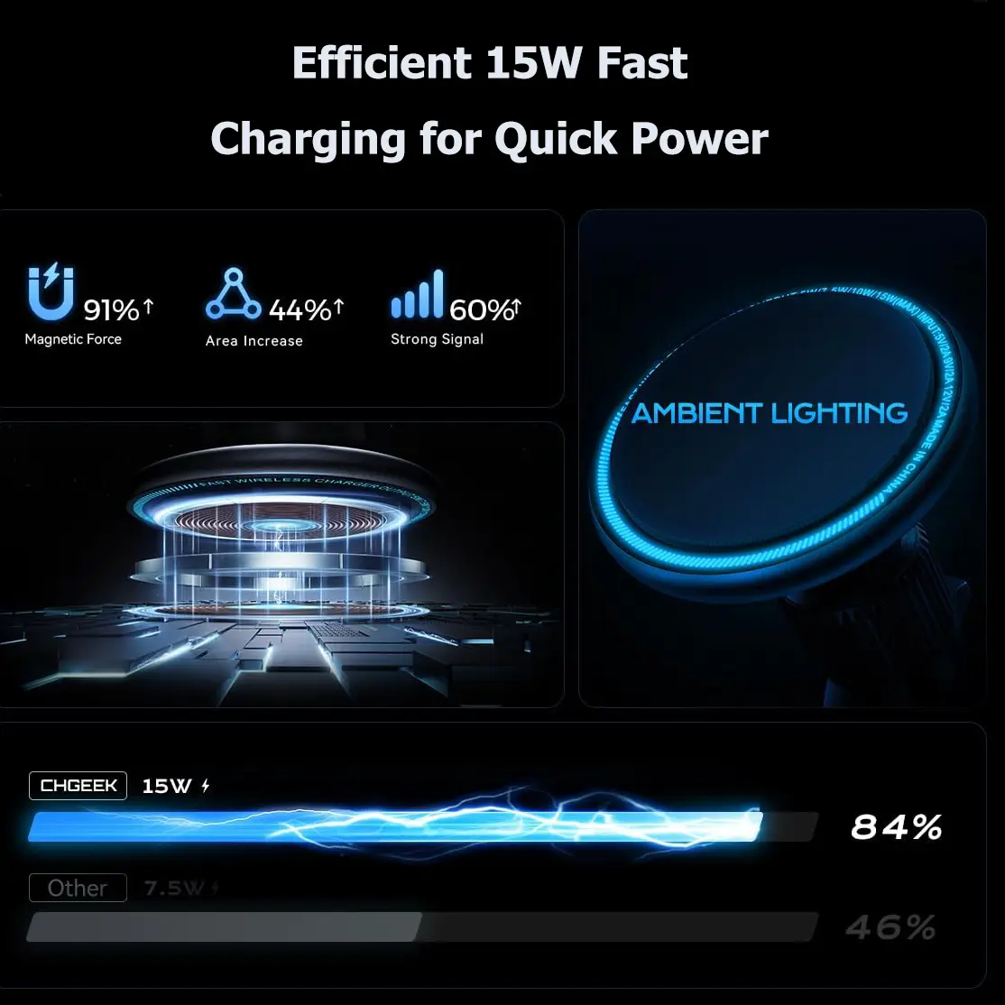 Ever struggled to keep your phone charged and secure while driving? Meet the 15W MAGFAST Car Charger with LED Magnetic Air Vent Holder, designed just for iPhone 12 through 16 users. This sleek silver charger clips easily onto your car's air vent, providing a rock-solid hold thanks to military-grade magnets. No more worrying about your phone slipping off during sudden stops or bumpy rides! With fast 15W wireless charging, your device powers up quickly, keeping you connected for calls, GPS, or music while on the road. The LED indicator lets you know when charging is underway, so you can focus on driving safely. It fits most MagSafe and regular cases up to 0.6 inches thick, making it versatile for everyday use. Plus, the high-temperature resistant design ensures durability no matter the weather. Inside the box, you’ll find the magnetic charger and air vent holder ready to install in minutes. Ready to upgrade your commute? Grab this handy charger and enjoy fast, hassle-free power on the go!
