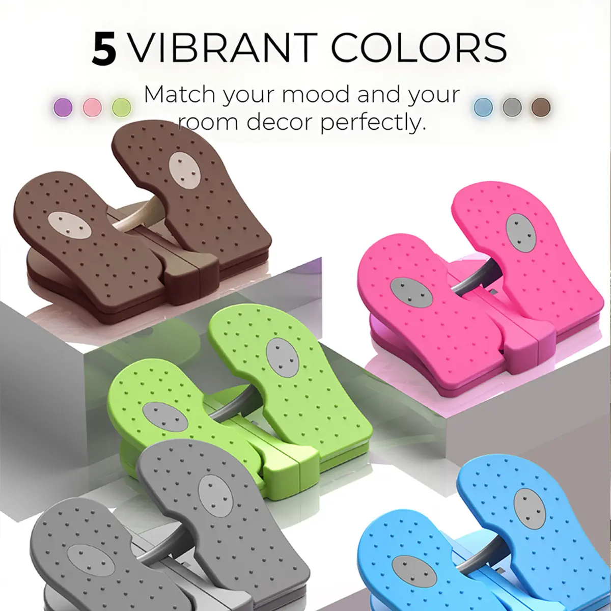 Available in Grey, Light Violet, Violet, Light Pink, Pink, Green, and Orange. Perfect for home exercise routines. Ideal for calf and ankle exercises. A foot stretching machine for legs workouts. Suitable for elderly people.