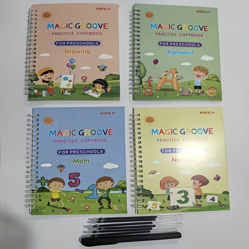 Magic Calligraphy Practice Book Set, Reusable Handwriting Copybook, Includes 4 Books, 1 Pen, 10 Refills, Random Grip Color