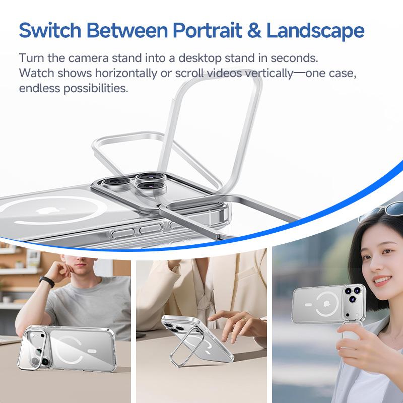 MAGIC JOHN for iPhone 17/Air/16/15 Pro Max Case with Adjustable Camera Cover Stand