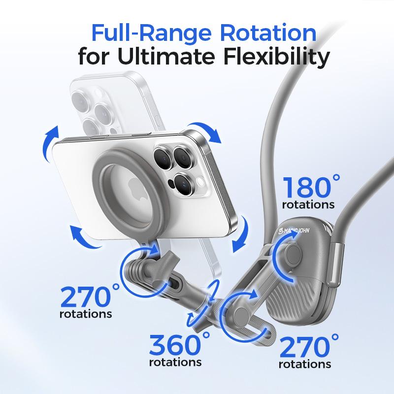 MAGIC JOHN Magnetic Neck Phone Mount – Hands-Free Vlogging, TikTok Live & Travel Filming | 360° Adjustable & Wearable