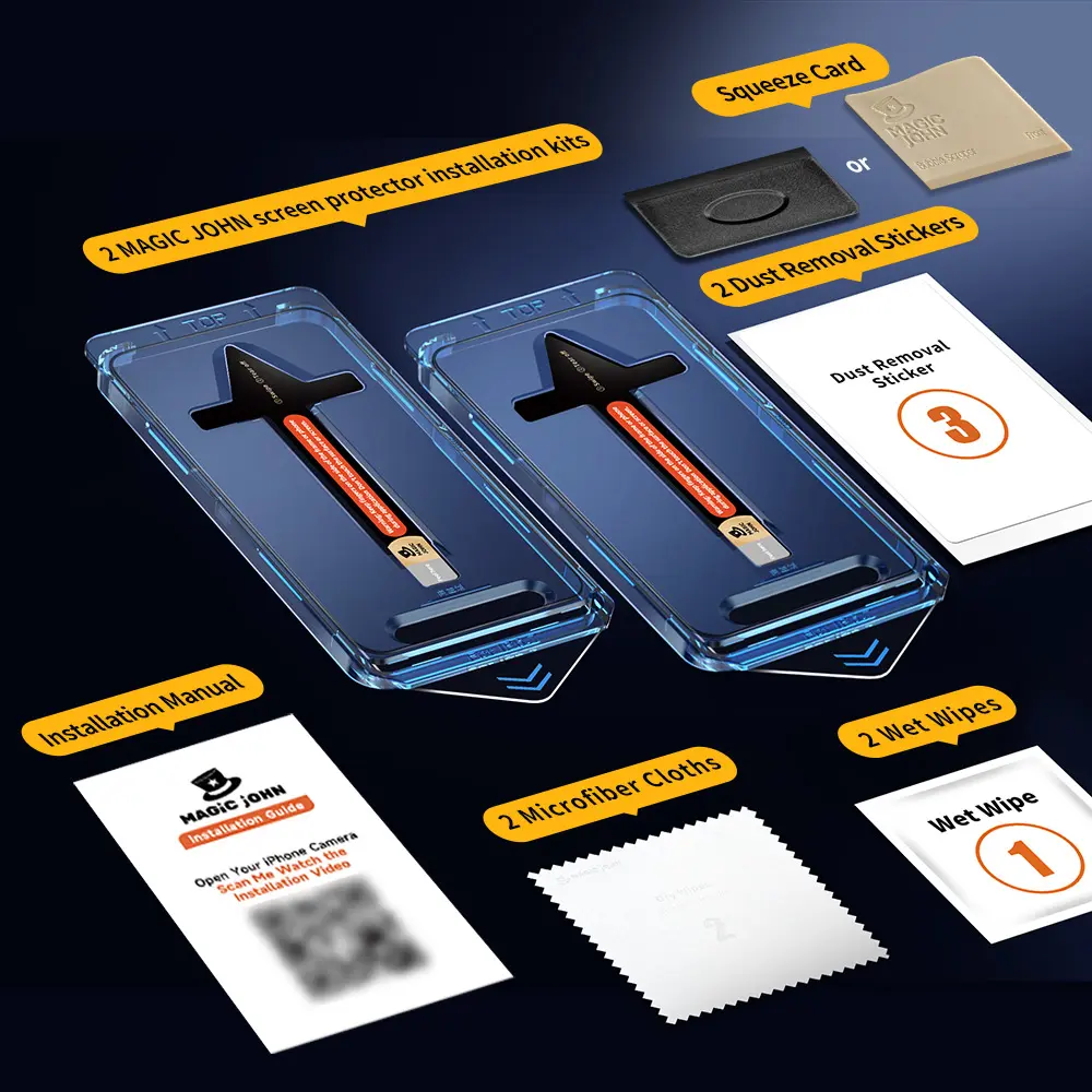Ever worry about prying eyes or annoying fingerprints on your phone screen? The MAGIC JOHN Screen Protector 2 Pack has you covered—literally. Whether you want crystal-clear HD visuals or privacy protection that blocks side glances, these protectors deliver. They feature a fingerprint-resistant oleophobic coating to keep your screen clean, plus a dustproof mesh that shields your earpiece without muffling sound. Installation is a snap with our pre-aligned design and dust-removal stickers—no bubbles, no fuss. Plus, the circular polarized eye protection reduces glare and eye strain whether you're outdoors or scrolling in the dark. Each pack includes two protectors, installation kits, wipes, dust stickers, and a microfiber cloth. Perfect for iPhone, Samsung Galaxy, and Google Pixel models, these protectors fit your screen 1:1 for seamless use. Ready to keep your screen safe, clear, and private? Grab your MAGIC JOHN pack today and enjoy peace of mind every time you pick up your phone.