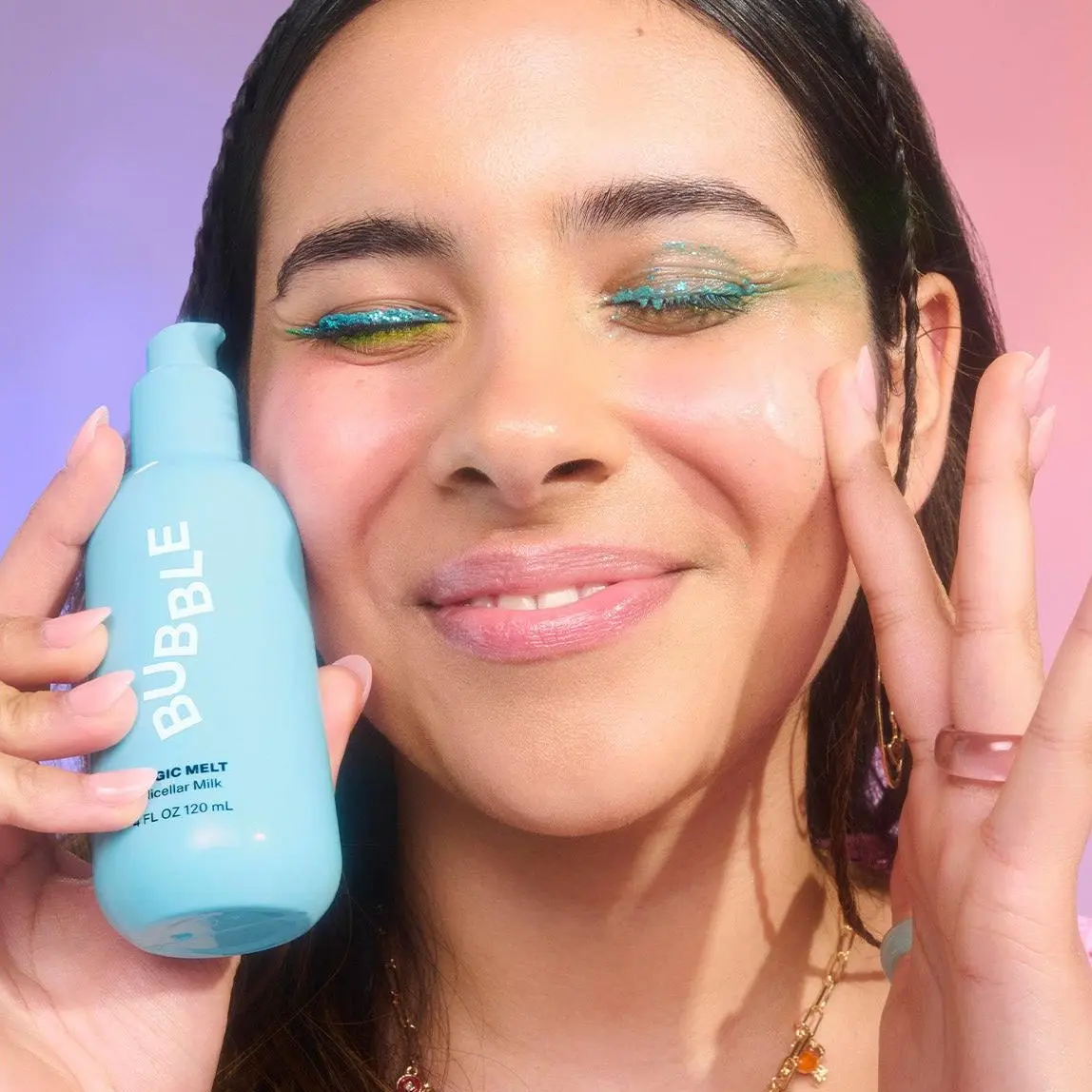 Melt the day awayyyy! Bubble’s Magic Melt Micellar Milk gently and oh-so-effortlessly removes makeup, oil, and SPF to reveal soothed and nourished skin.