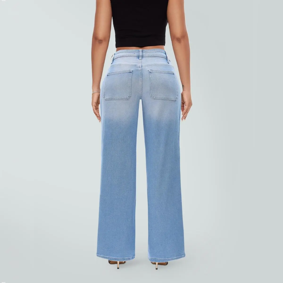 5. Magic ONESO Front Pocket Design Mid-low Rise Baggy Jeans Stretchy Wide Leg for Women Distressed Pants Light Blue/Dark Blue Womenswear Bottom 8001 Lady Basic Minimalist Comfortable Denim Tummy Control Curve Hugging Plus Size Regular Size BBL