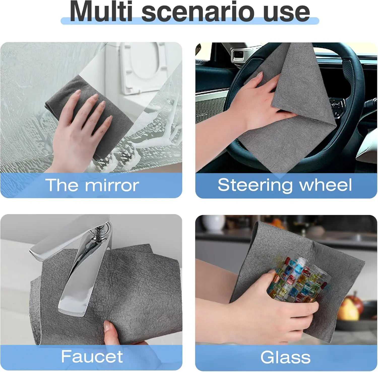 Absorbs oils, liquids, and spills faster than traditional towels or sponges. Perfect for kitchen counters, glass, mirrors, furniture, and more — the all-purpose cleaning solution that picks up everything quickly.