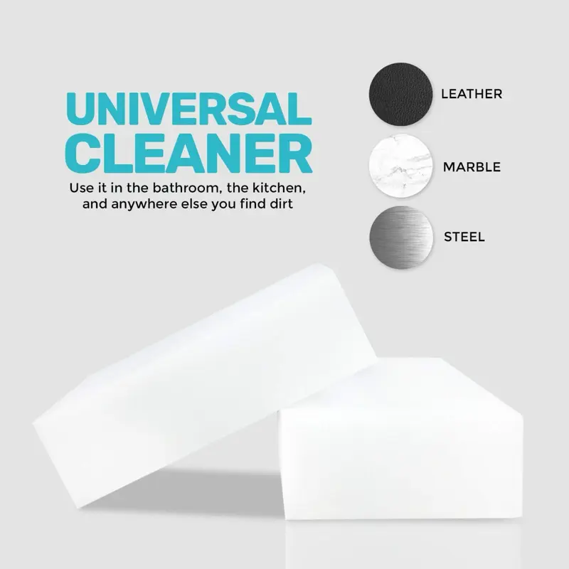 Say goodbye to stubborn stains and grime with our Magic Eraser Cleaning Sponge! Made from high-density melamine foam, this powerful yet gentle sponge lifts away dirt, grease, and stains using only water — no chemicals needed.