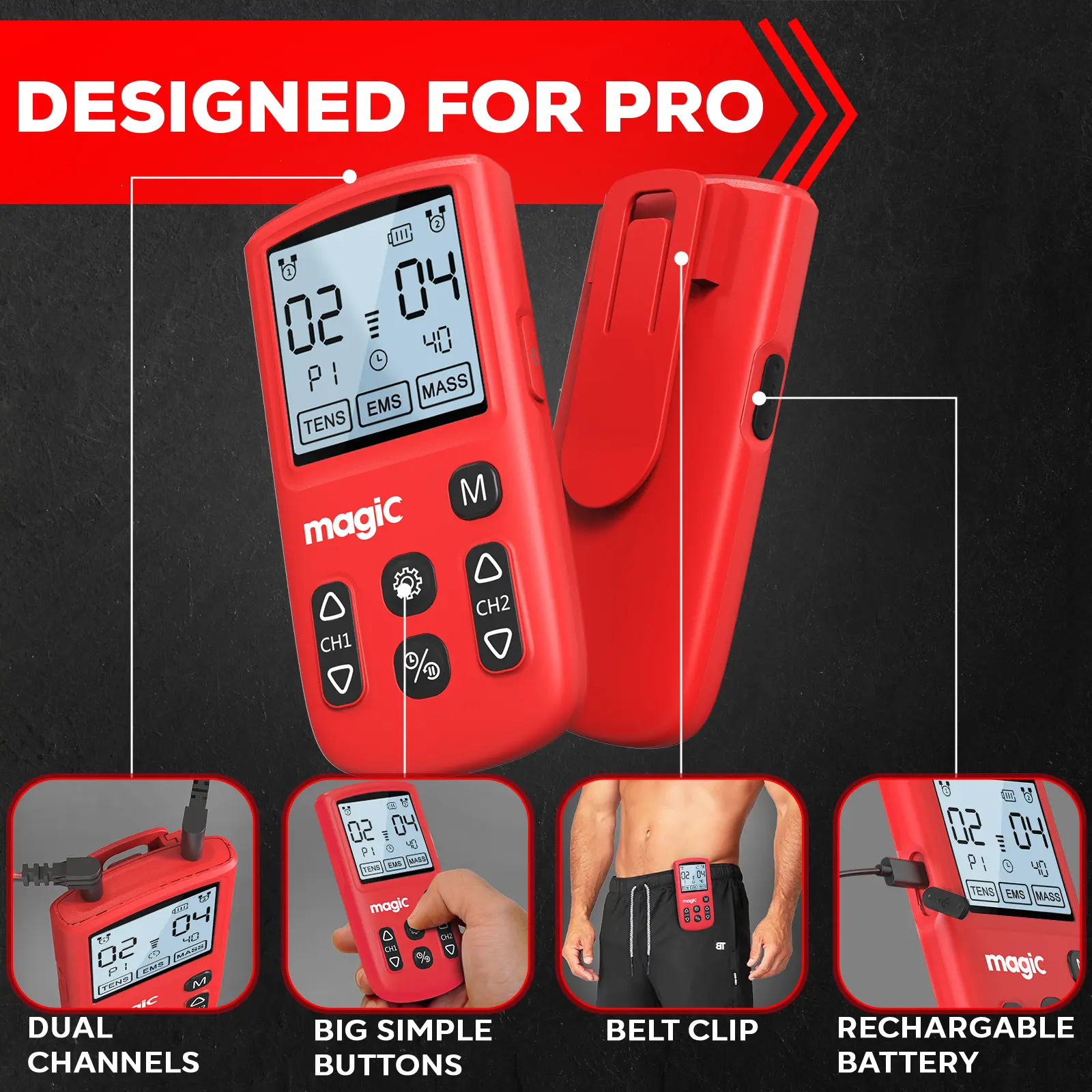 Multi Functional: Tens unit with 22 Modes, 40 Levels Intensity for Pain and Muscle Relief, TENS unit help relieve pain associated with sore and aching muscles in the shoulder, waist, back, neck,upper / lower extremities(arm/leg) due to strain from exercise, overwork or normal household work activities