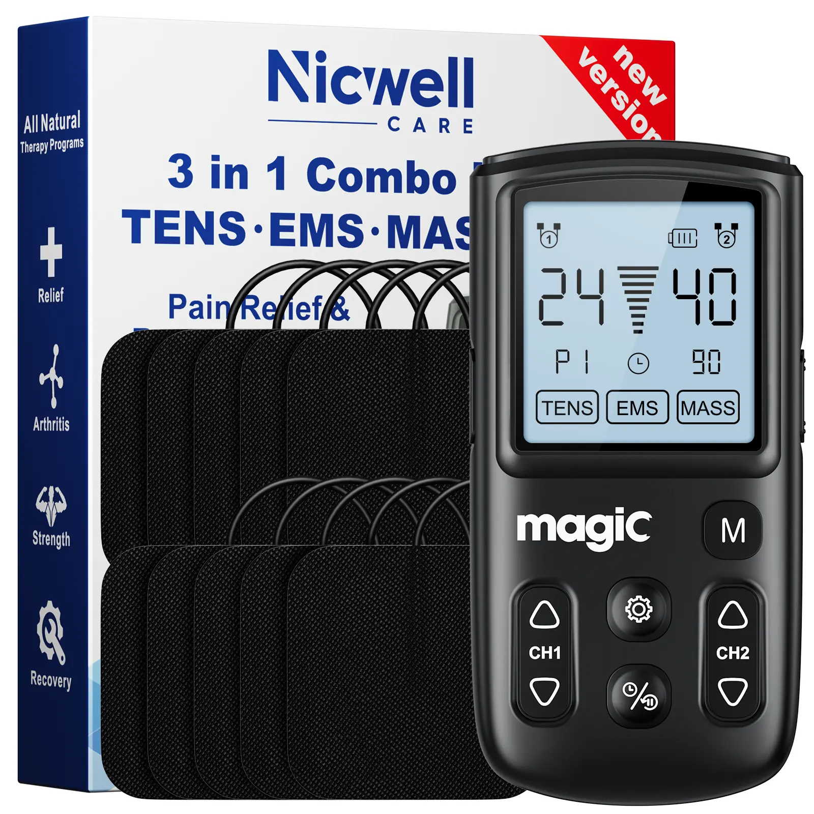 A/B Dual Channels: You can operate it with different intensity settings for each channel to pain relief therapy, with portable size, it can be used in home, office, driving or travelling. lt is with human body simulation technology, microcomputer intelligent control technology, simulates a variety of massage methods. The Tens Unit is also intended to be used to stimulate healthy muscles in order to improve and facilitate muscle performance