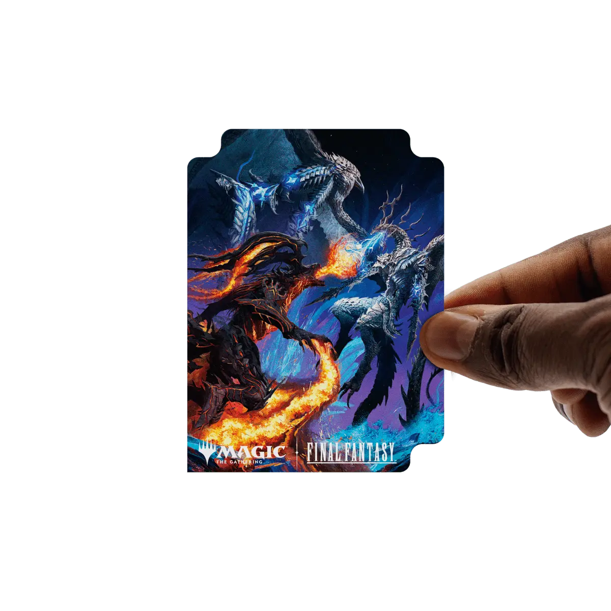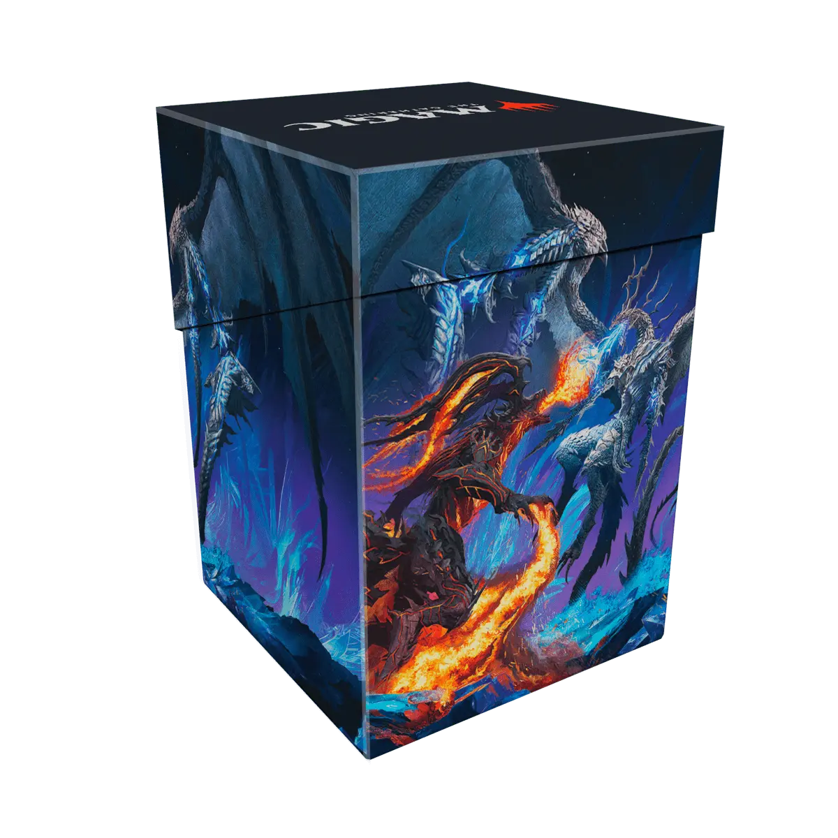 The Magic: The Gathering®—FINAL FANTASY™ Bahamut and Ifrit 100+ DECK BOX® card storage container features vibrant, full-color artwork and includes one deck divider. Made with archival-safe, non-PVC, rigid polypropylene materials, you can store up to 100 double-sleeved cards with confidence. The self-locking lid keeps your cards securely stored when not in use, while also offering easy access. Sized for standard-size trading cards.
