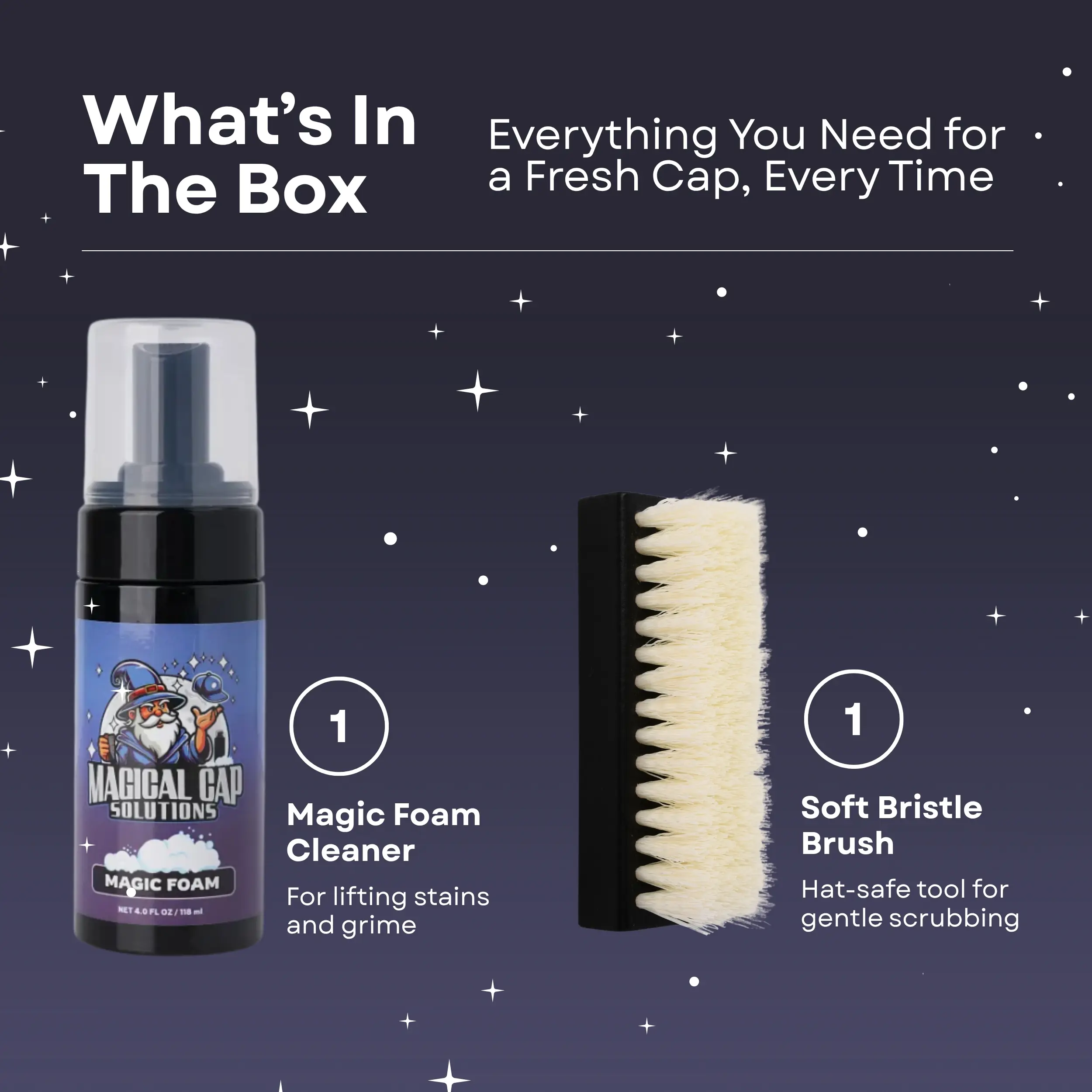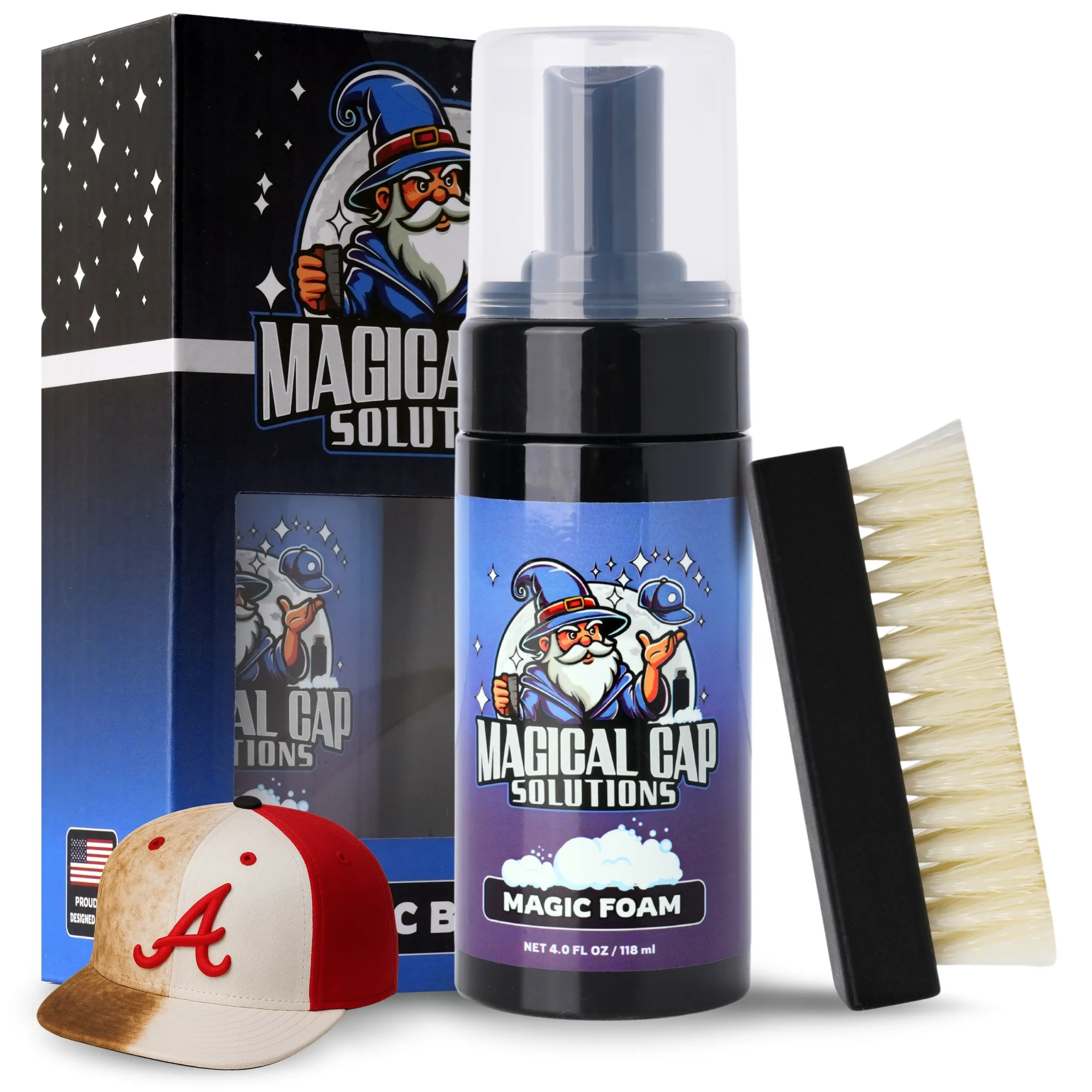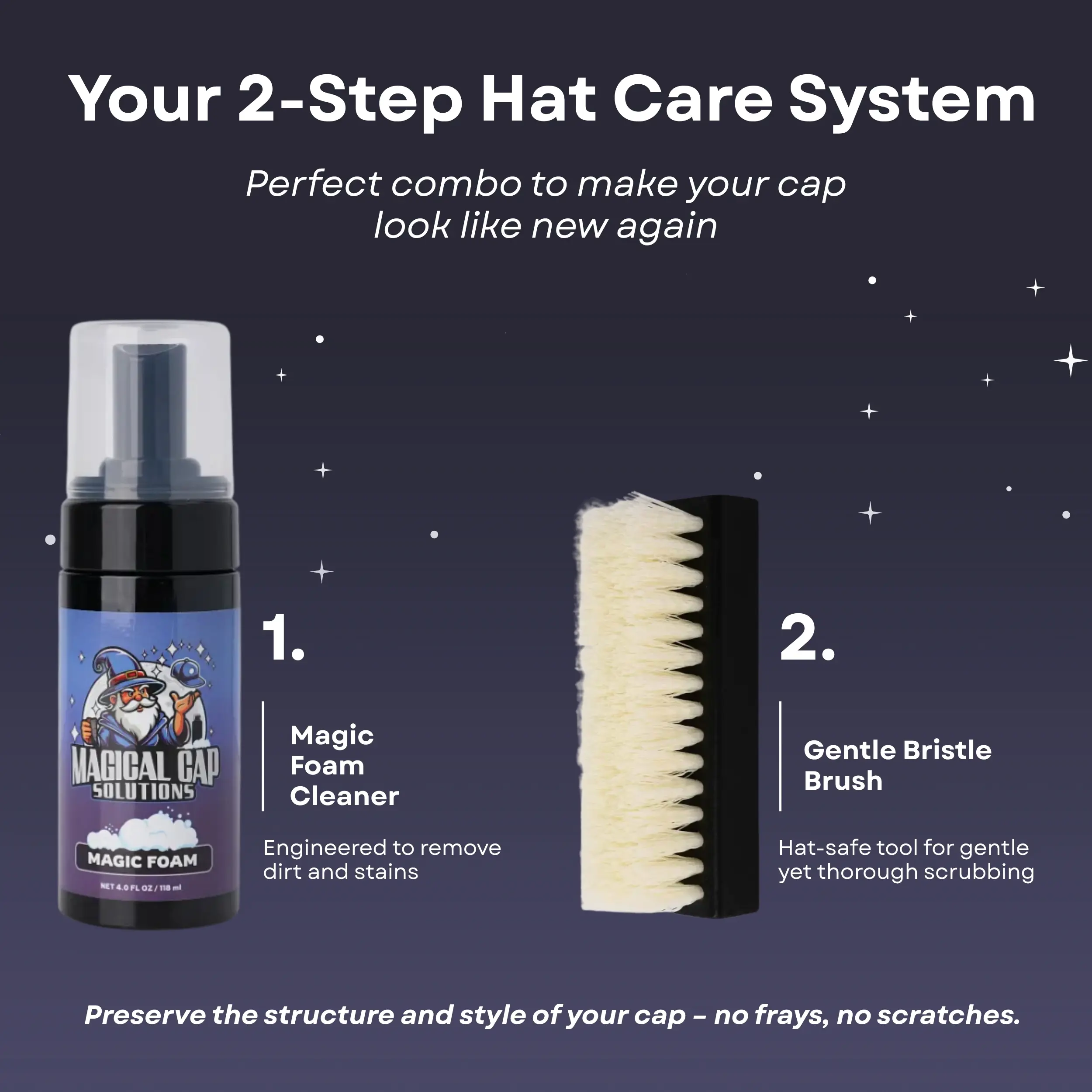 The brush is way too abrasive and messed up the stitching on the underside of the bill and the foam just disappears into the hat im pretty sure its just water