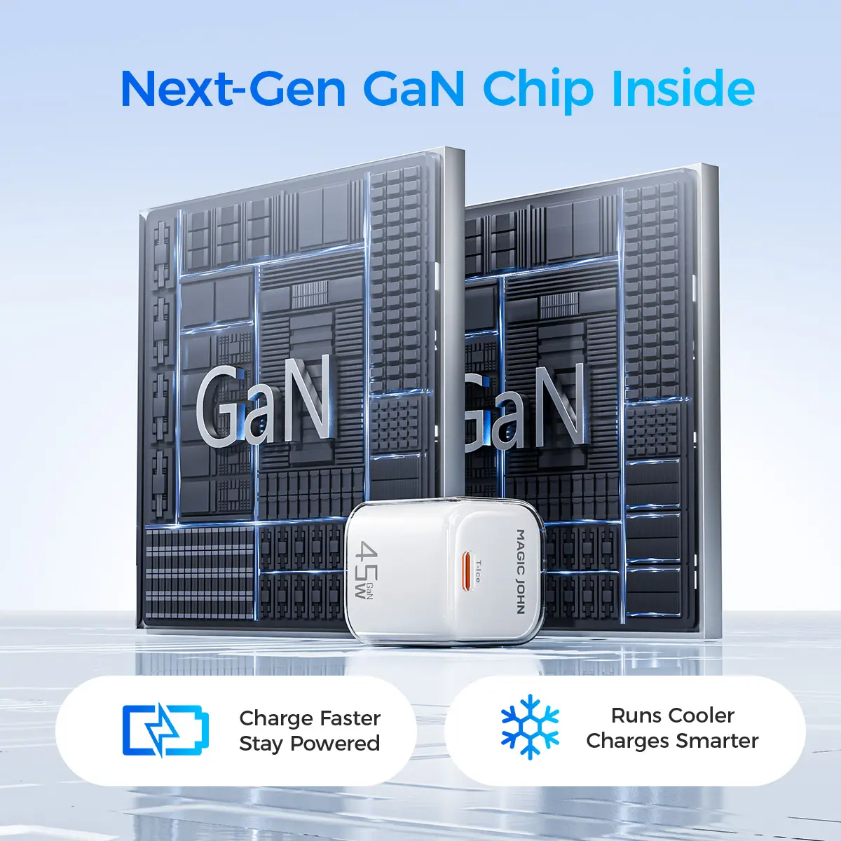 Compact 45W USB C wall charger designed for fast, efficient everyday charging. Smart power delivery automatically adjusts output to protect your device, all in a small, travel friendly design. #45WCharger #USBCFastCharge #CompactWallPlug #PhoneChargingGear #magicjohn