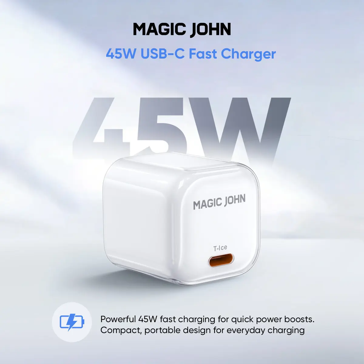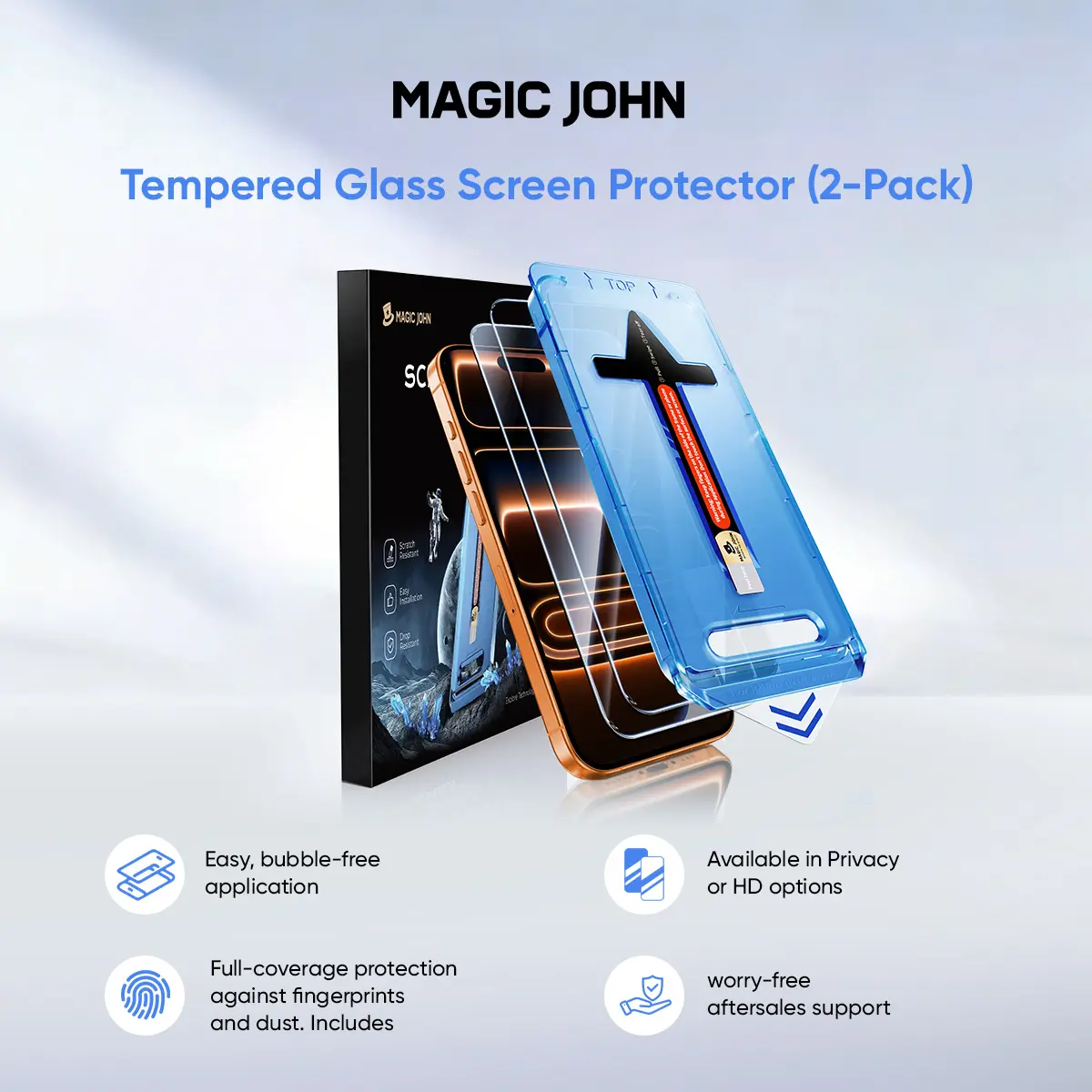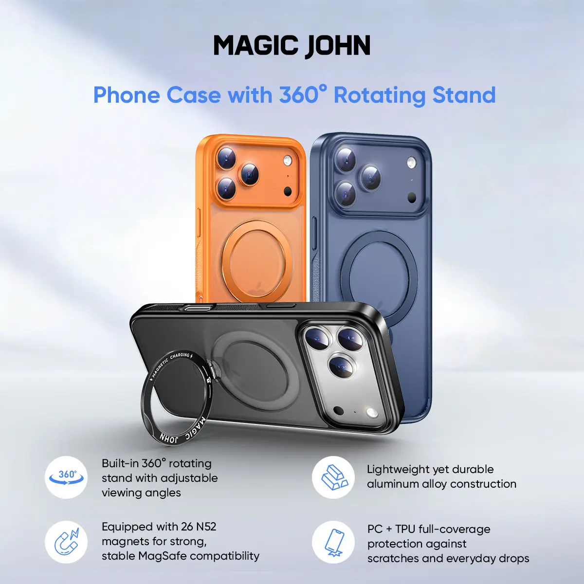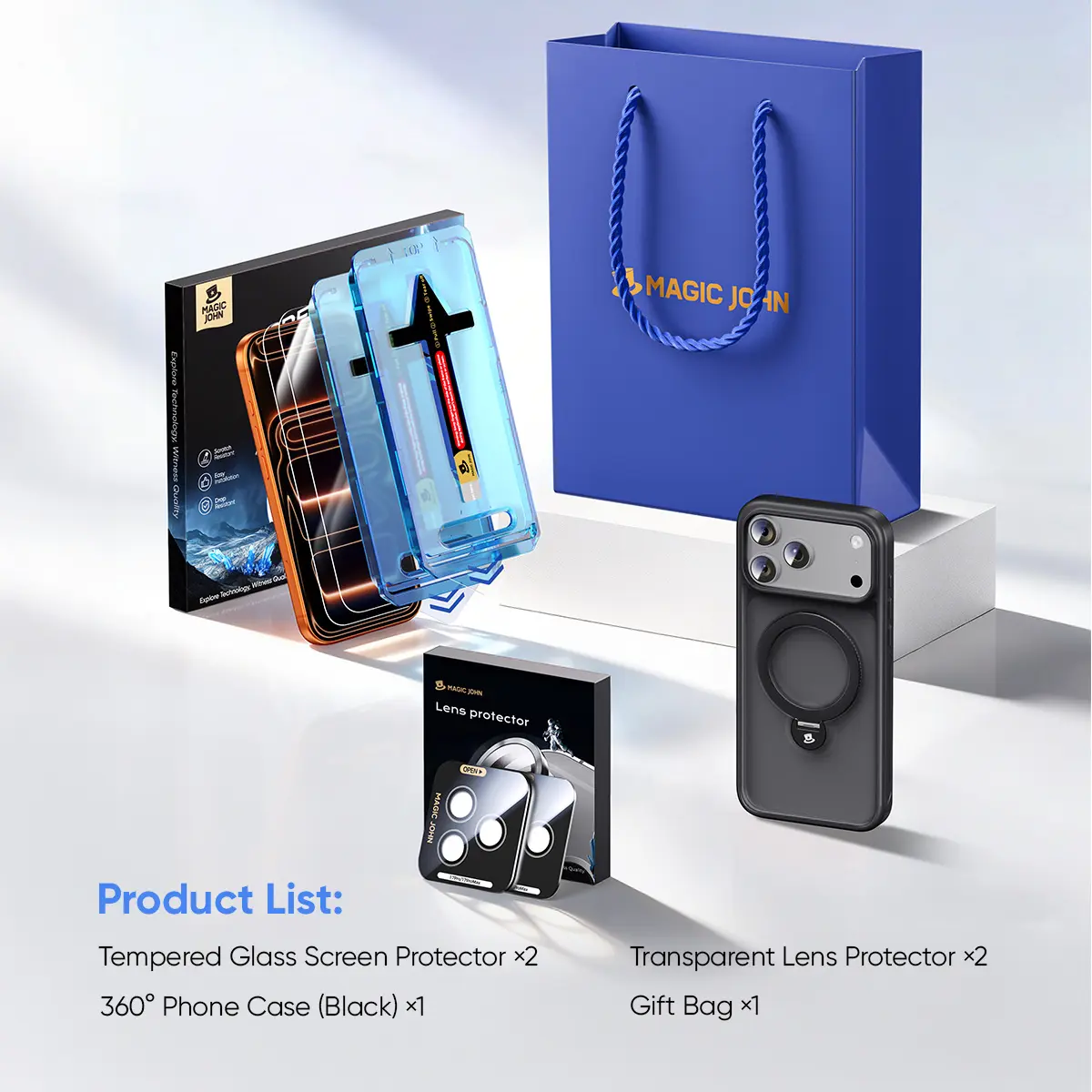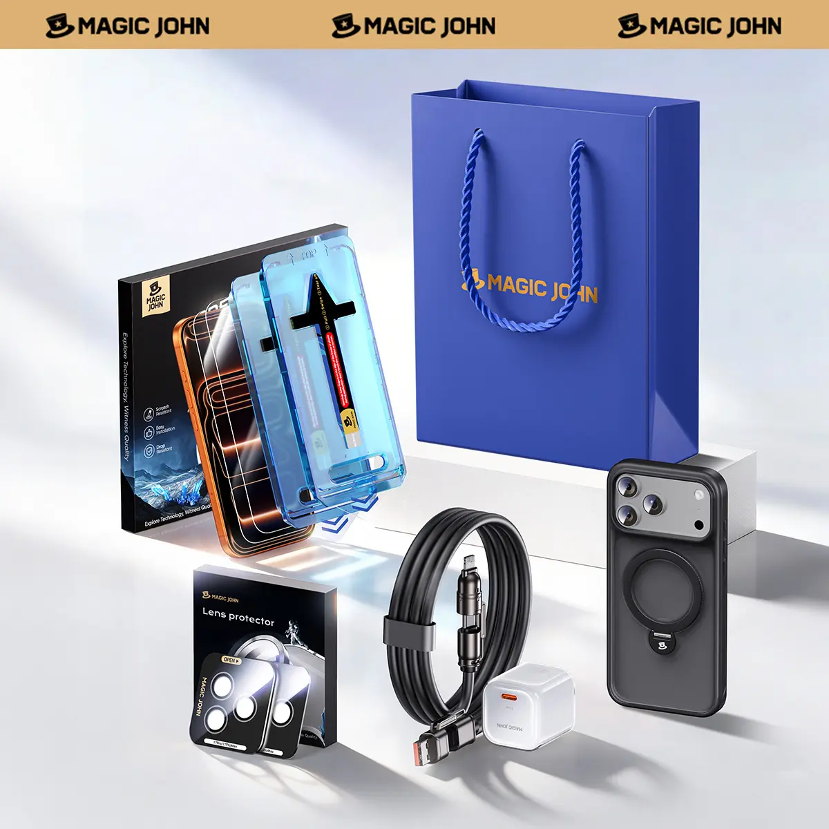 MAGICJOHN Digital Value Bundle for iPhone17/16/15Pro&Pro Max Includes HD or Privacy Tempered Glass Screen Protector, Camera Lens Protector, 360° Rotating Magnetic Stand Phone Case, 45W Super Fast Charger, and 65W USB-C 4-in-1 Charging Cable