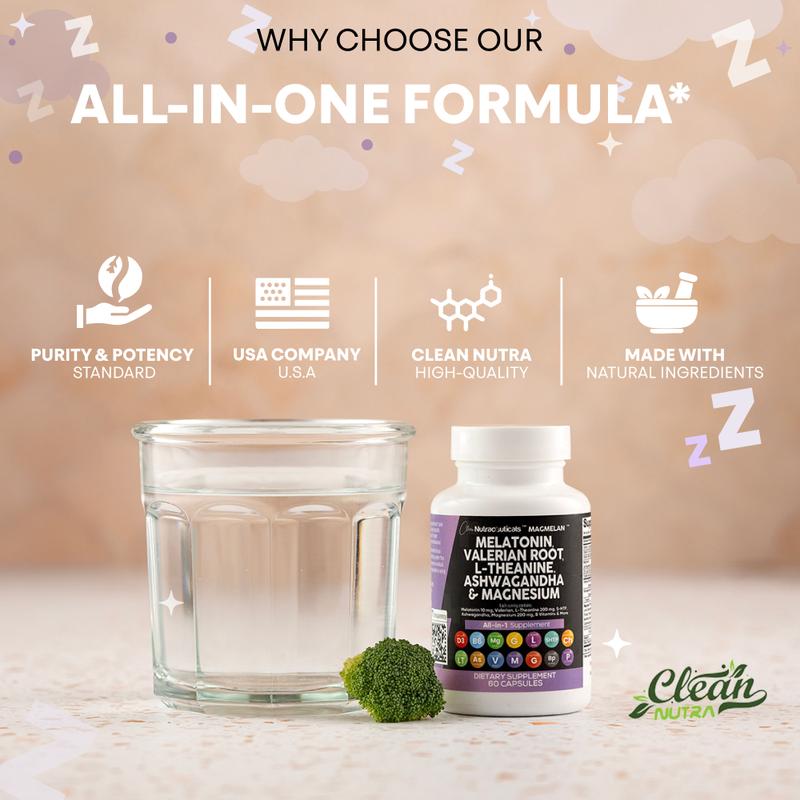 ·Introducing the MagMelan All In One Supplement - In addition to sleep support for men and women, our formula contains Ayurveda Products, Valerian Roots, and Theanine 200mg Capsules. This can be a powerful alternative to Magnesium Taurate Gummies, Ashwagandha Gummies, Magnesium Taurate 400mg, Melatonin 10mg Gummies, and Magnesium Citrate Liquid.