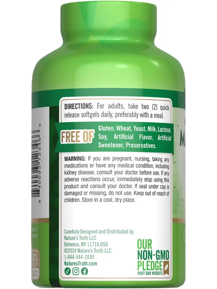Our mission at Nature’s Truth is to meet your wellness needs with products that go above and beyond. Nature’s Truth provides supplements in various delivery forms, such as capsules, softgels, chewables, tablets, powders, liquids, and gummies to suit every preference. Our Magnesium Citrate is non-GMO, and free of gluten, wheat, yeast, milk, lactose, soy, artificial flavor, artificial sweetener, and preservatives.