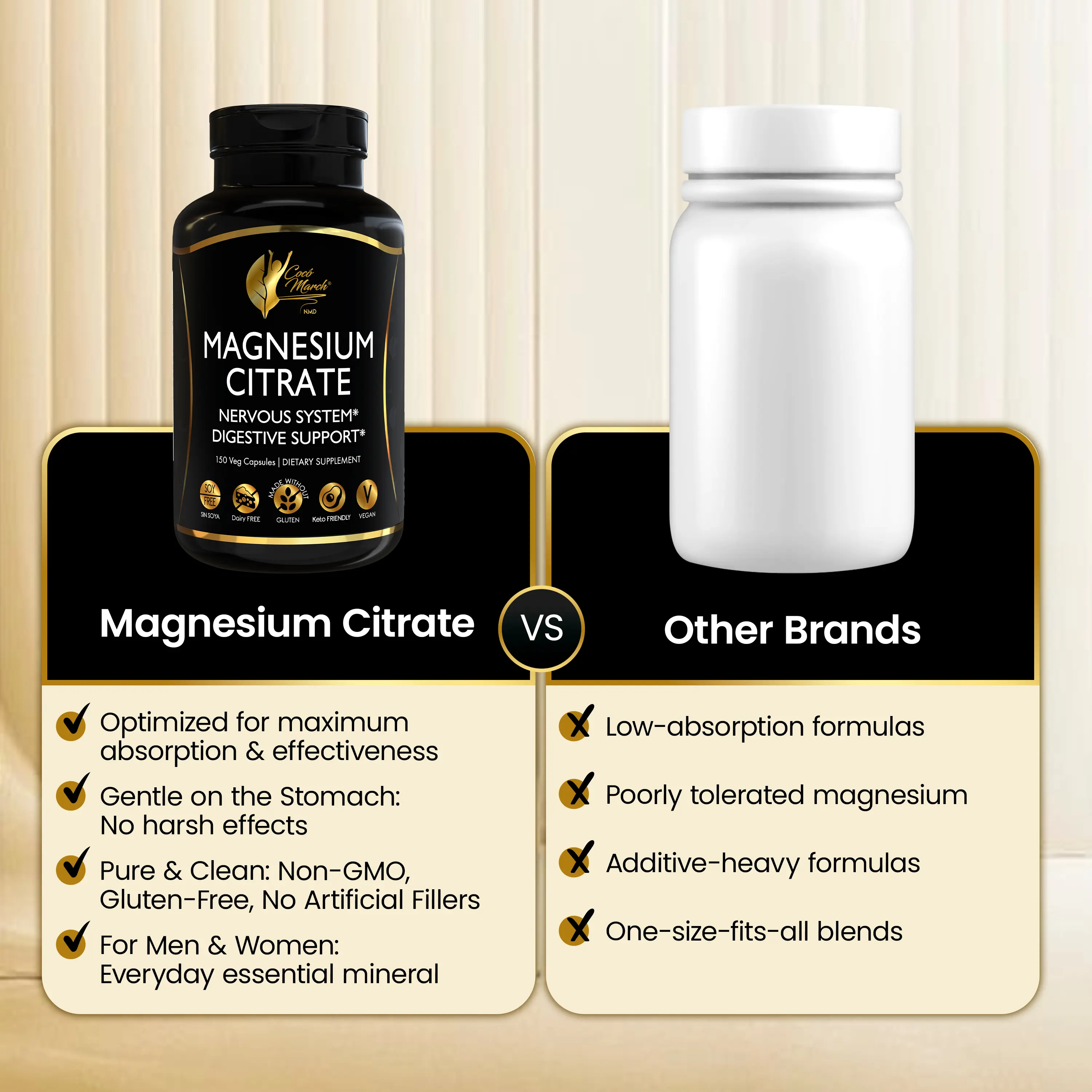 ·Whole-Body Support: Magnesium plays a key role in supporting bone health, energy production, blood pressure regulation, and nervous system function.