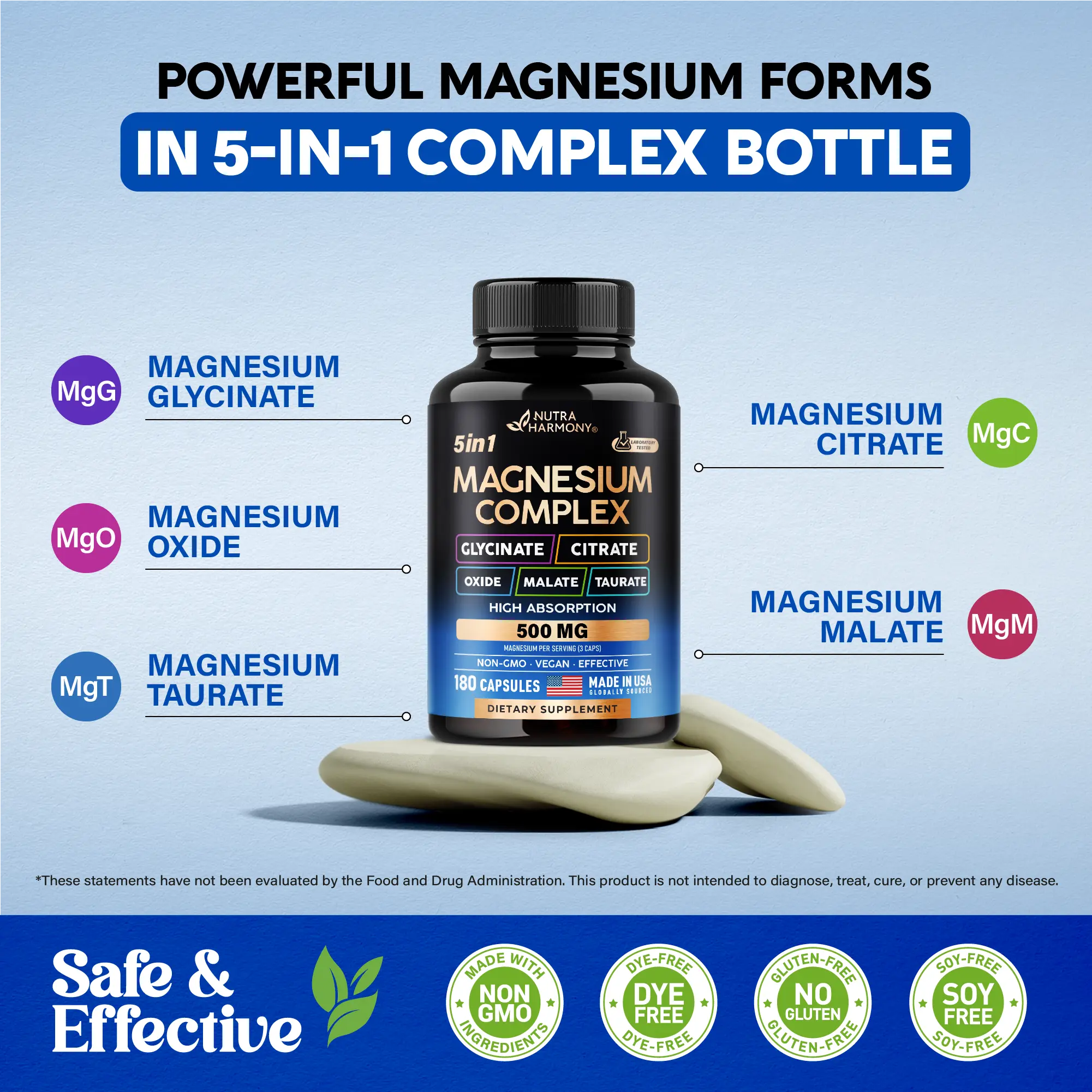 ·Effective Blend — Our advanced technology is how we manufacture the highest quality supplements in the USA. Our Magnesium Complex capsules are formulated without artificial additives, sugar, soy & GMOs.