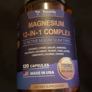 ·HIGHLY ABSORBABLE BLEND OF 12 MAGNESIUM CHELATES:Totaria's Magnesium Complex is a powerful blend featuring 12 distinct forms of magnesium: Glycinate, Citrate, Malate, Aspartate, Gluconate, Ascorbate, Taurate, Oxide, Lactate, Carbonate,Orotate. This comprehensive formulation ensures enhanced absorption and utilization of this vital mineral. Experience the multiple health benefits of magnesium, from supporting bone and muscle health to promoting overall well-being. Make Magnesium Complex a part of your daily wellness routine for optimal health.