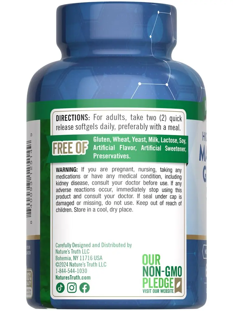 Our mission at Nature’s Truth is to meet your wellness needs with products that go above and beyond. Nature’s Truth provides supplements in various delivery forms, such as capsules, softgels, chewables, tablets, powders, liquids, and gummies to suit every preference. Our Magnesium Glycinate is non-GMO and free of gluten, wheat, yeast, milk, lactose, soy, artificial flavor, artificial sweetener, and preservatives.
