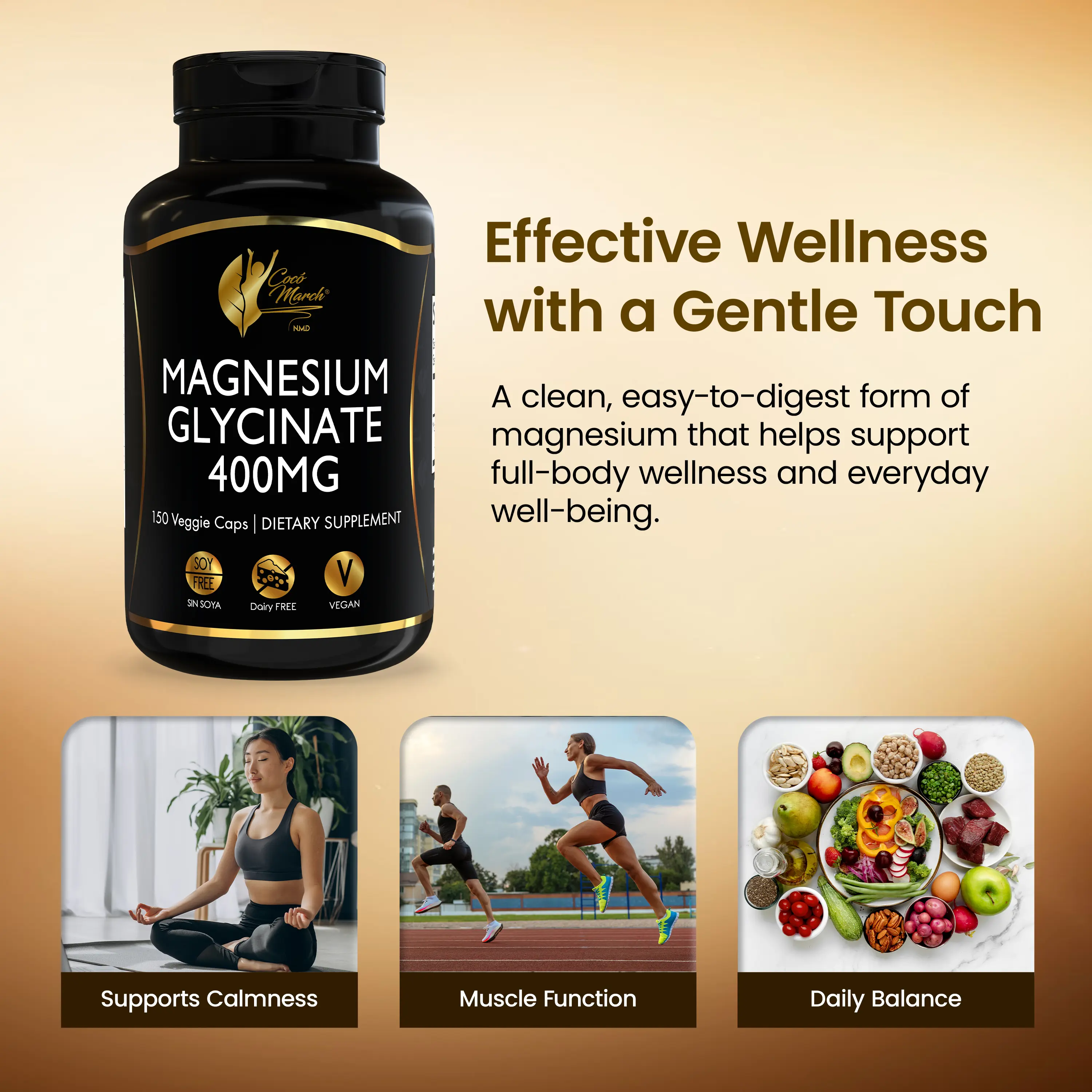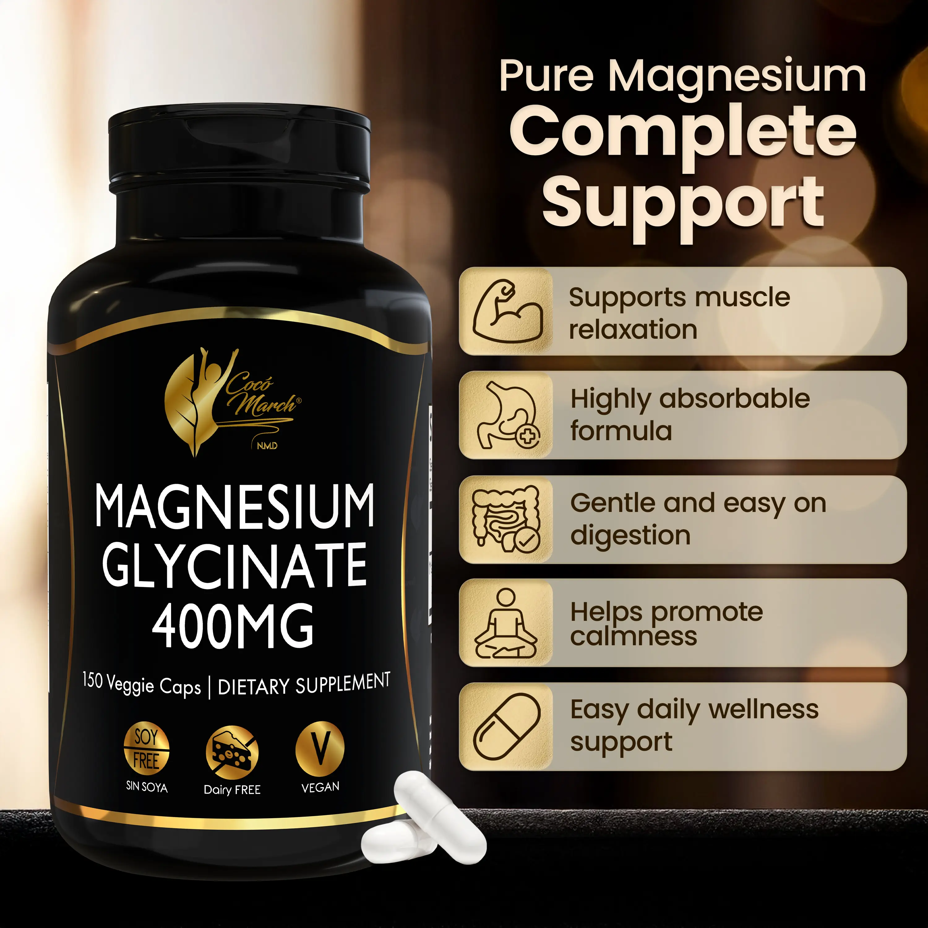 Support your calm, every day. Magnesium Glycinate by Cocó March is expertly formulated for gentle digestion, optimal absorption, and daily wellness support. Each serving provides 400 mg of elemental magnesium to help support relaxation, restful sleep, and essential body functions—all in a clean, vegan-friendly formula.