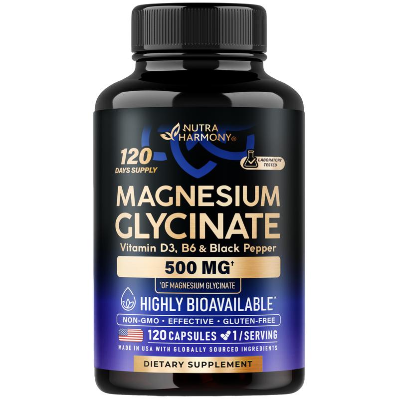 Magnesium Glycinate 500mg — Magnesium glycinate 500mg capsules for muscle tonus and wholesome body relaxation. A great supporter after a long day.