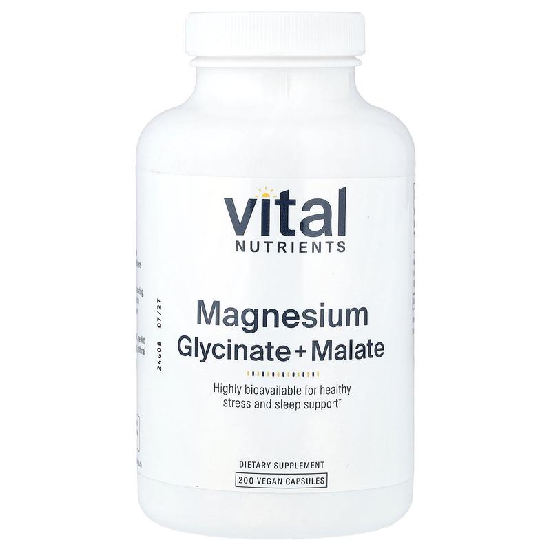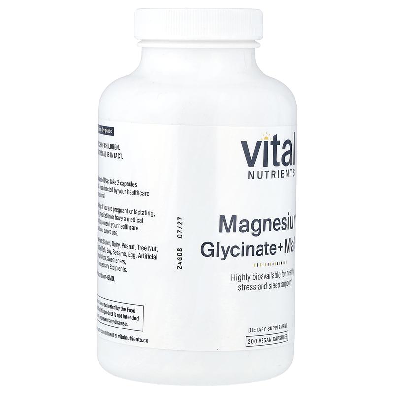 Vital Nutrients Magnesium, Glycinate + Malate, 200 Vegan Capsules (120 mg per Capsule)