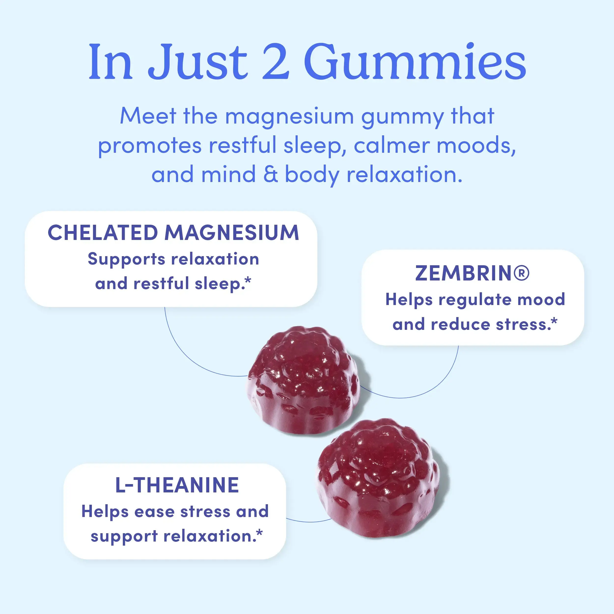 Restorative Sleep - Fighting insomnia? Get the restorative sleep you’ve been missing with magnesium, an essential mineral, and L-theanine, an amino acid popular for its brain-calming effects. These nutrients help calm the nervous system and improve sleep.