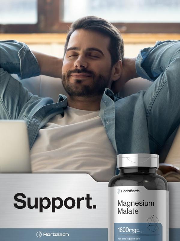 Support your routine with Horbaach Magnesium Malate! This highly innovative formula delivers 1,800 mg Magnesium Malate per serving in convenient coated caplets. Our vegetarian formula is gluten free and non-GMO, made without artificial flavor or sweetener, delivering just what men and women need to help meet their supplement goals!
