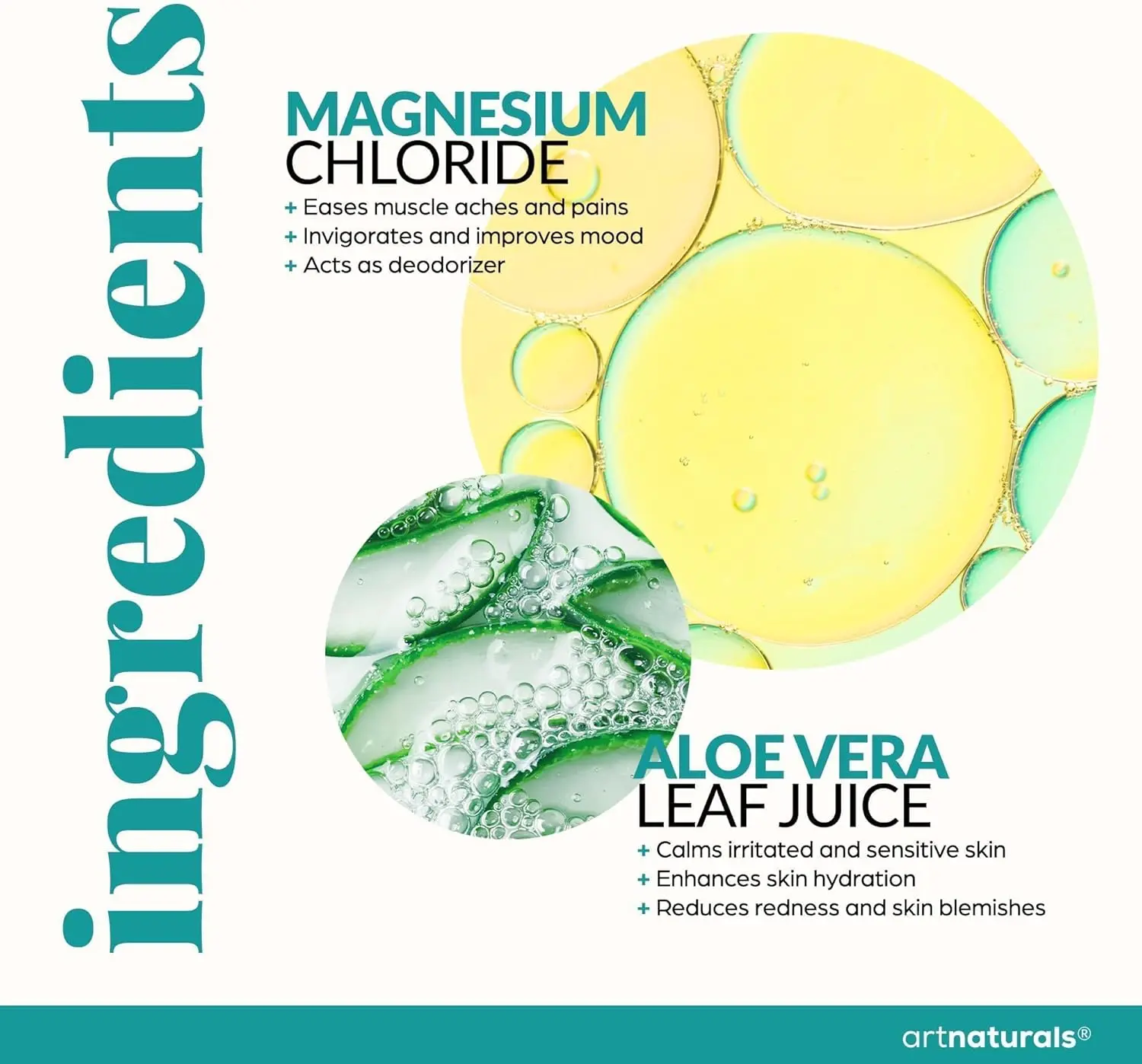 The magnesium didn’t work as I expect, But once I took a BATH & MIXED the spray and lotion together, WOW. The pain went away, the swelling in my legs went down, I could bend my knees again. Thank you artnaturals! I have recommended and placed in my shop.