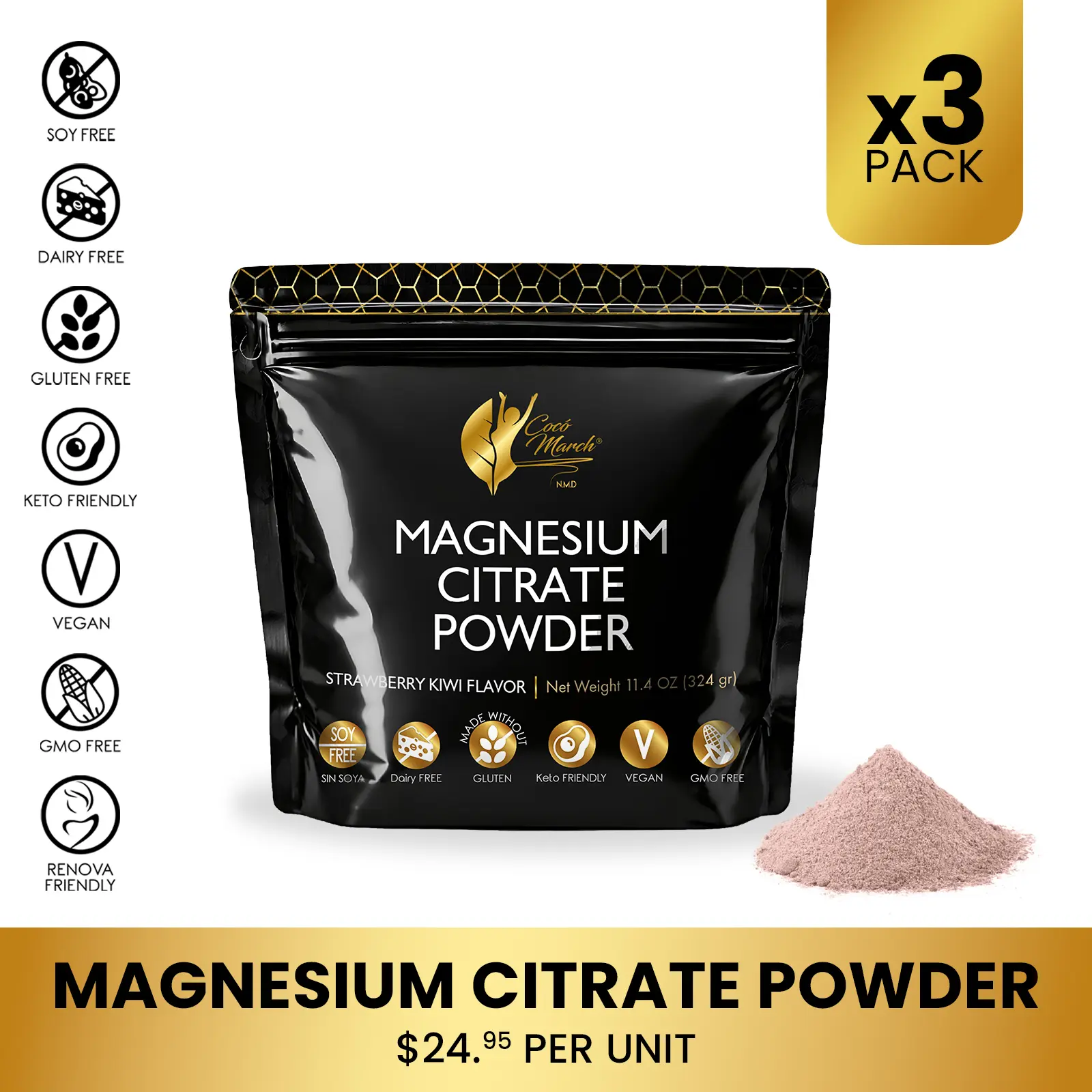 Each 11.4 oz bag contains a nutrient-packed powder with 600 mg of magnesium citrate per scoop.