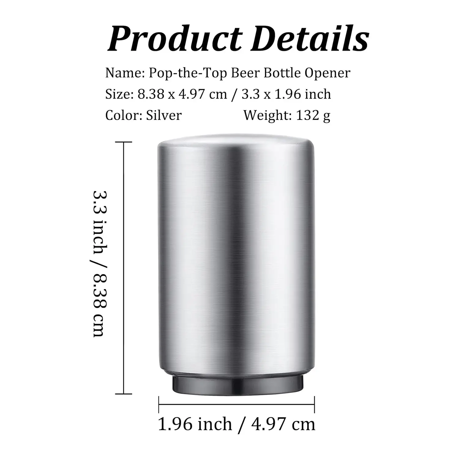 【What You Get】You will get 1pcs one-handed stainless steel automatic beer bottle opener with magnet. Only press and then can pop the bottle lid cap quickly. This push down bottle opener is easy-action and no wrist-twist design. The magnetic beer opener can easily remove the bottle cap from the bottle with one hand. This bottle opener is also named as abridor de botellas de cerveza.