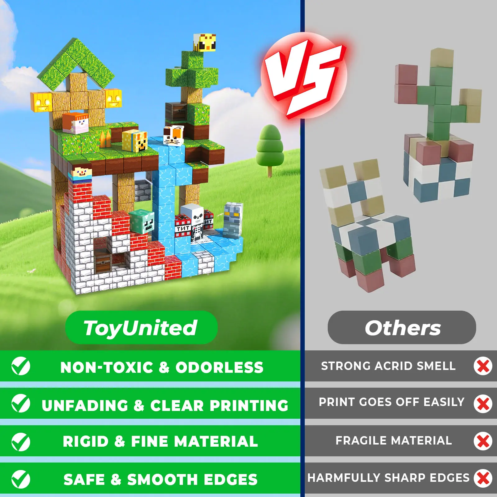 【Build, Play, Learn】Every set of our magnetic blocks and magnetic cubes is an adventure waiting to happen. Perfect for kids' toys, especially for boys aged 4-8, these magnetic toys make construction fun and easy. Parents and teachers alike will love the educational value, as children learn through play, it helps to promote kids’ creative thinking, concentration and patience, hand-eye coordination motor skills, cooperative skills, spatial and motor skills!
