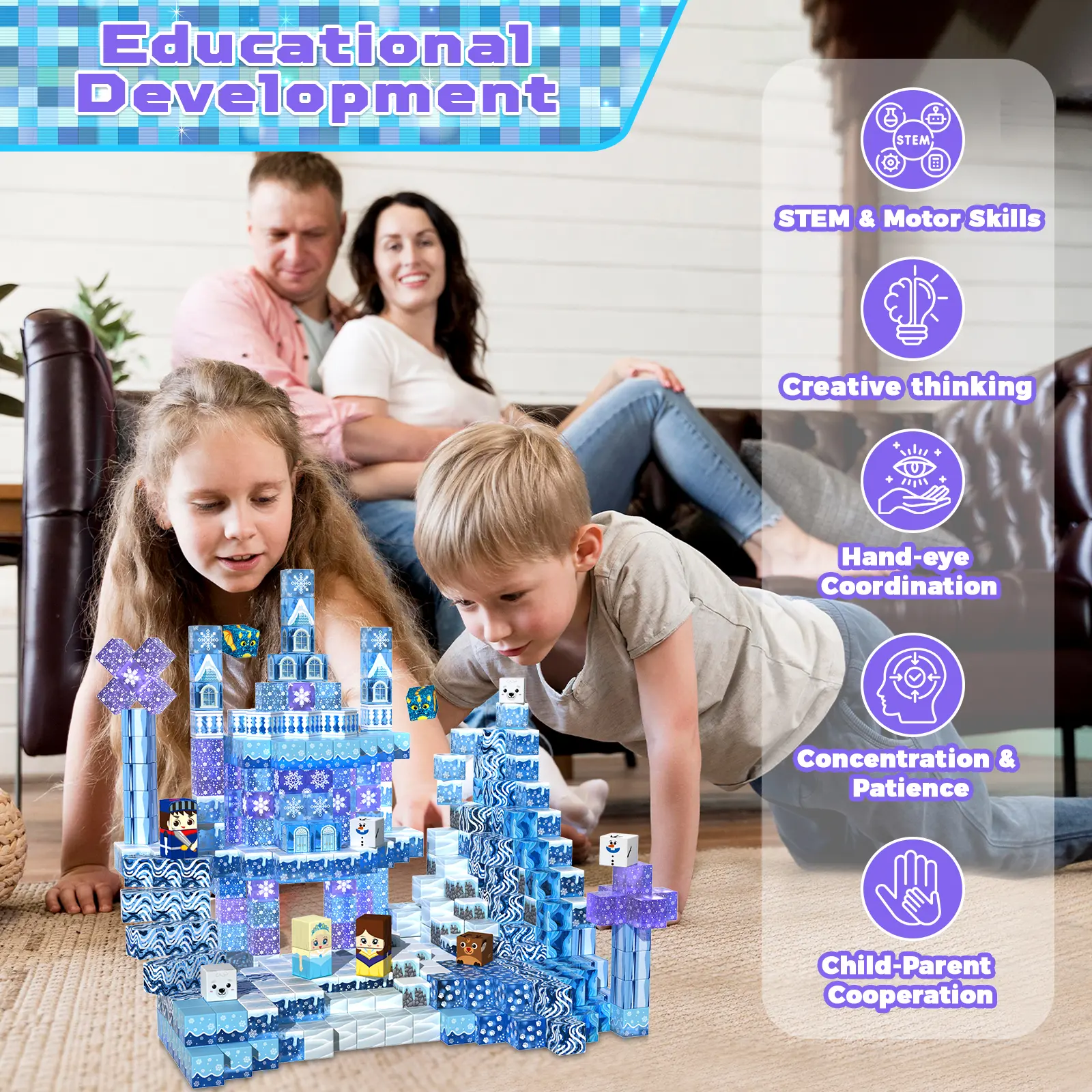 ·【Build Your Own Frozen Castle Magnetic】Get ready to build a castle with this new magnetic cube set simulation "Magnetic Frozen Castle" Imagine the amazing stories that could happen in Magnetic Frozen Castle and start your castle adventure! Magnetic blocks allow your child to travel to a wonderful castles or a fantasy of possibilities! From simple to challenging builds, experience the fun of role-playing and dress-up toys! Let kids’ imaginations run wild with our magnetic open-ended playset!