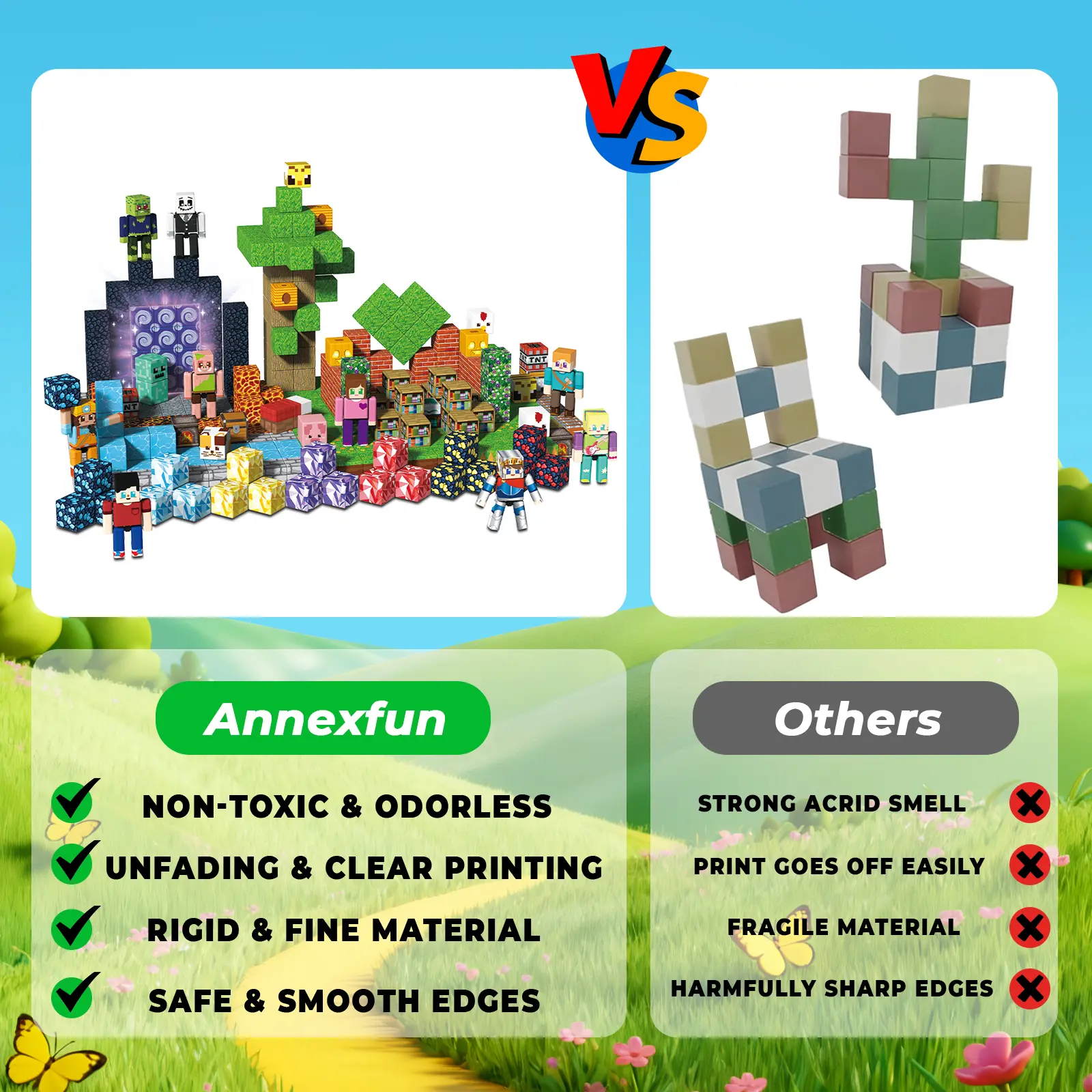 Enhances Cognitive Skills: These magnetic blocks are more than just toys—they're powerful educational tools! By assembling 2D patterns (like flowers and trees) or 3D structures (such as castles and treehouses), they help children aged 3 and above develop spatial thinking, fine motor skills, color and shape recognition, and problem-solving abilities—making them an ideal choice for early learning.