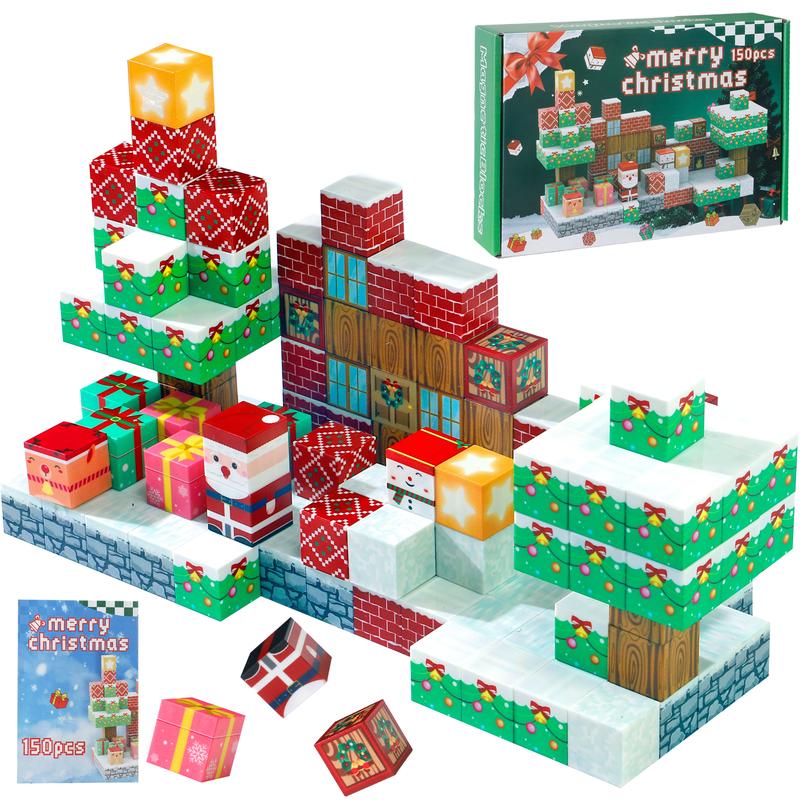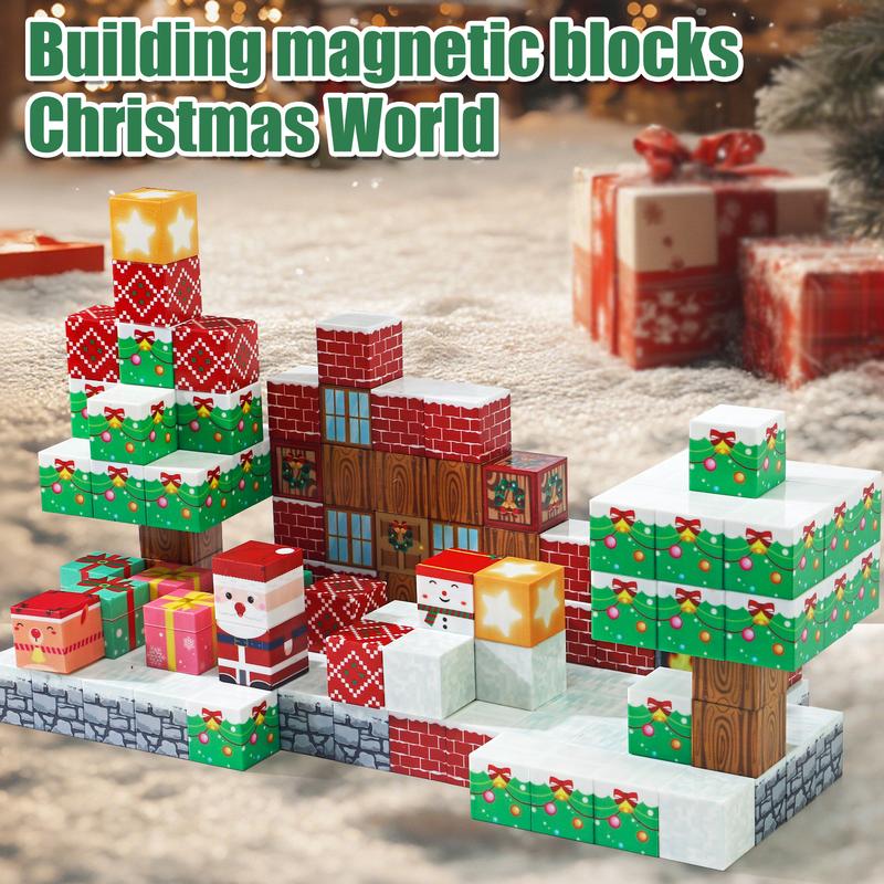 The Magnetic Building Blocks Christmas Edition is a perfect holiday STEM toy for children aged 4 to 8. It promotes creativity, learning, and holiday cheer, making it an ideal gift. Made from high-quality, non-toxic ABS plastic and featuring strong magnets, it is durable and safe. The festive designs and colors bring Christmas joy to every build. Comes in a beautiful Christmas box, making it gift-ready.