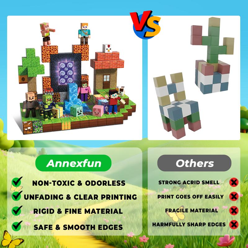 We absolutely love these, the little characters are made with brittle plastic so be careful when moving the limbs, my son already broke the leg off the zombie character, it's ok cause it's the zombie haha. These are pretty cool and good quality, my only wish would be for the magnets to be stronger