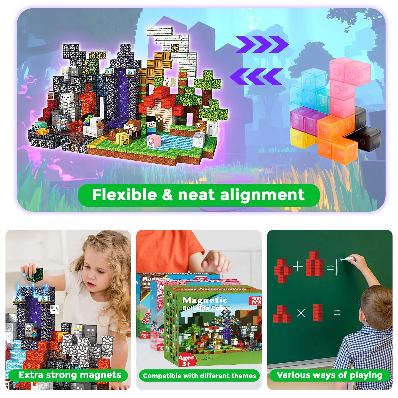 Magnetic Building Blocks-500PCS Magnetic Blocks Magnetic S【Magnetic Building Blocks】 Our magnetic building blocks set is crafted with sealed edges and a durable structure, Made from non-toxic, eco-friendly materials, these magnetic blocks ensure strong and safe play. Perfect magnetic blocks for kids ages 4-8 to play safely and creatively.